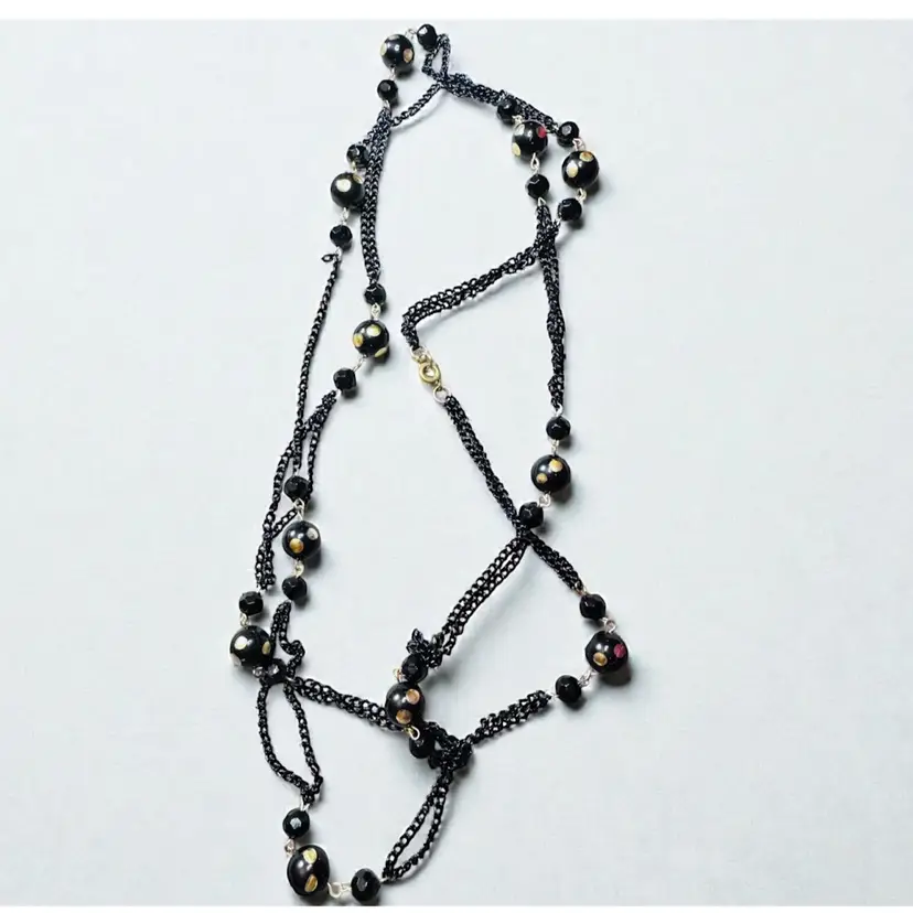 Vintage Black & Gold Enamel Chain & Bead Necklace - 54” Flapper Length - Clean & Very Good Condition