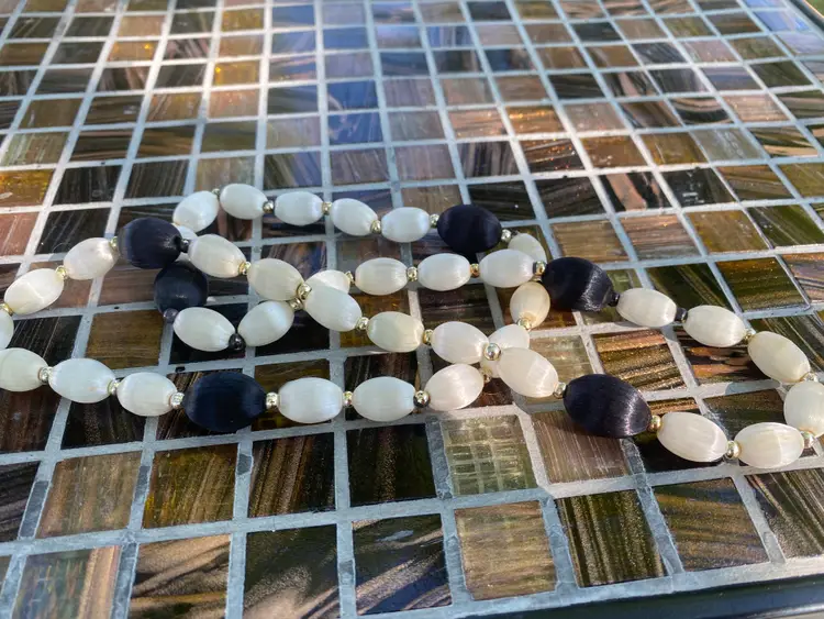 31" Strand Length. No missing or broken beads, common wear throughout. Some silver Tone on the spacers are flaking, see close up photos.