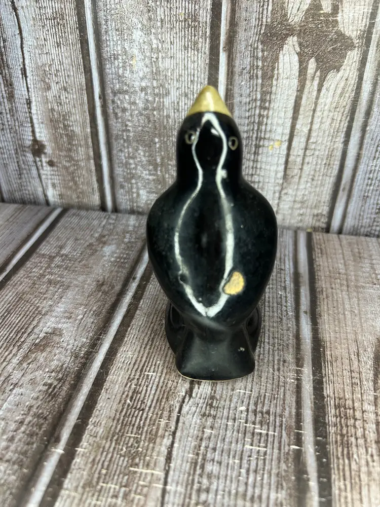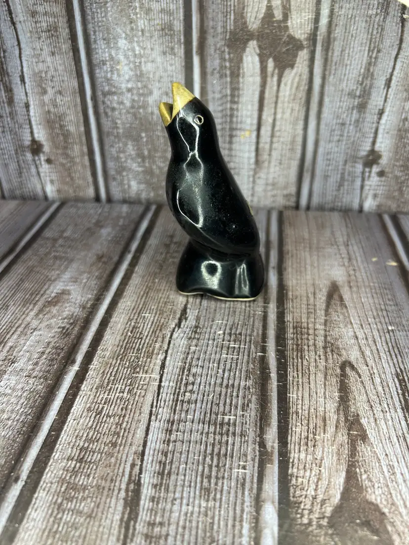 Vintage Black Crow Magpie Glazed Pottery Pie Bird Vent Whistler