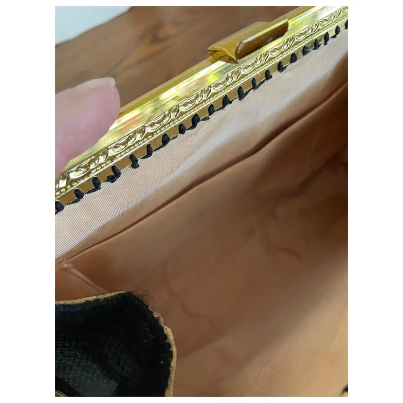 Vintage Tapestry/Needlepoint Purse Black background with Florals Has Gold clasp and chain Smoke and Pet Free environment