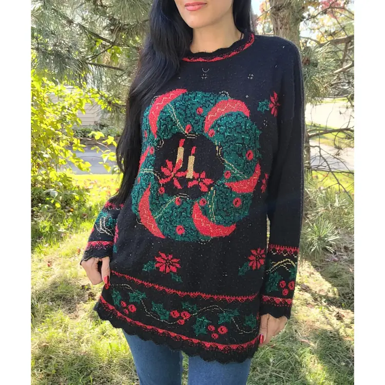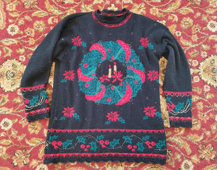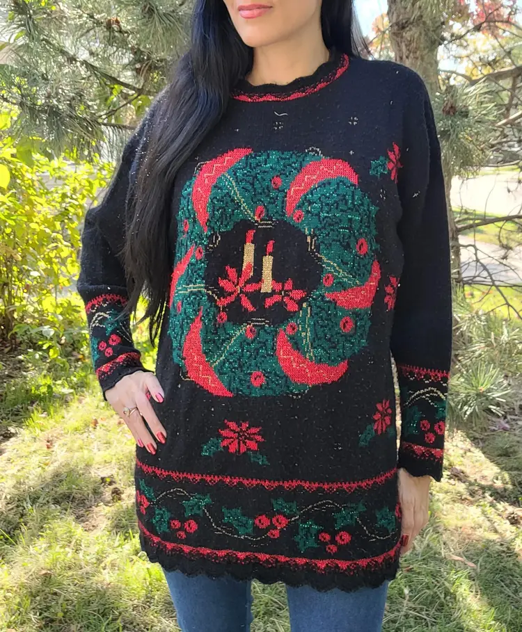 Fab 1980s/90s Christmas sweater! Model is a modern size small and this is fits like a small to medium depending upon how you like fit. Please see measurements below to ensure it'll fit you before purchasing. This is in good condition with some pilling, please see pictures for details.
