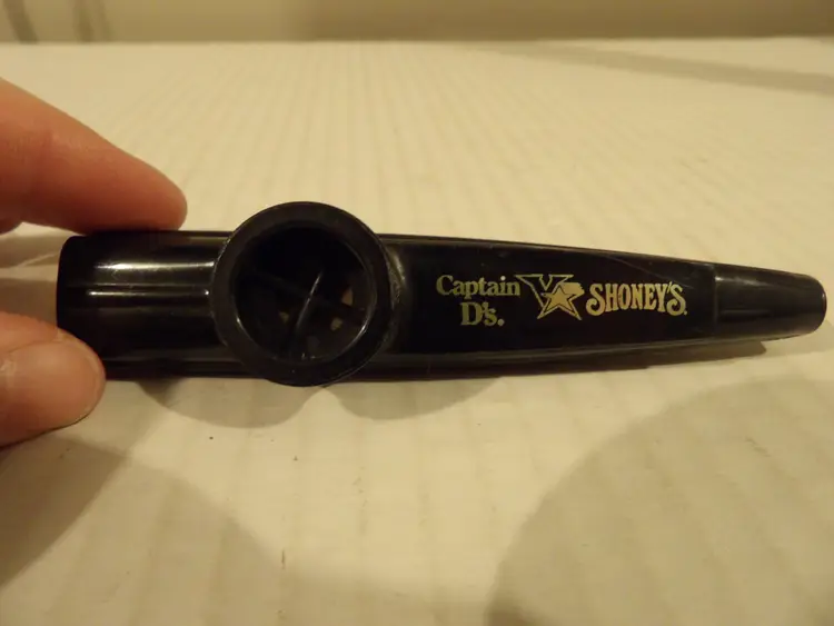 This is a vintage kazoo with multiple advertising on it. It has Shoney's, Captain D's, and Vandy on it. It is black with no damage. Please see pictures. (Ursula)