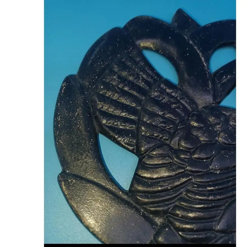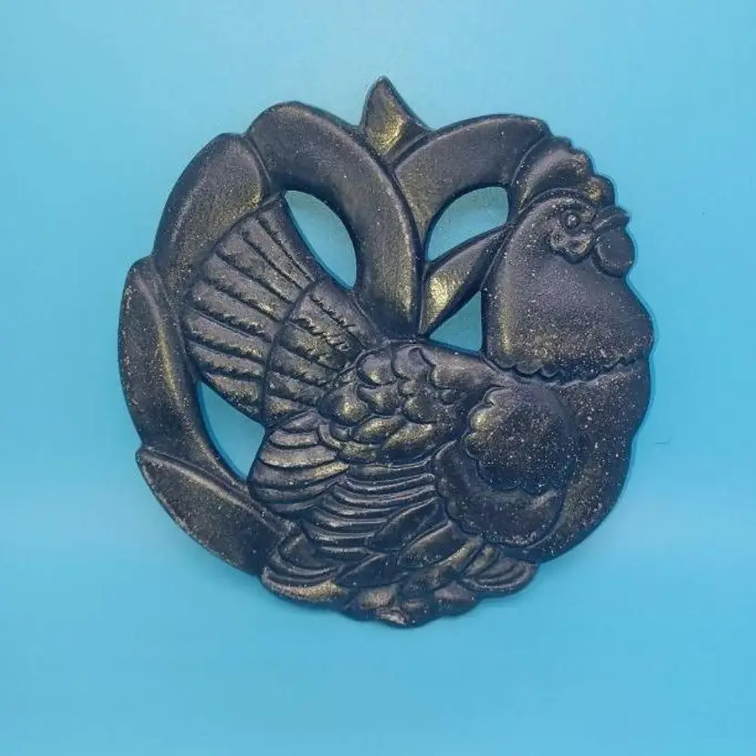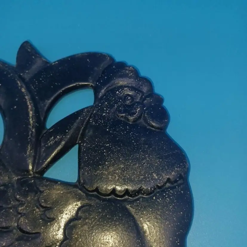 Vintage Black Pottery rooster trivet wall hanging Chicken