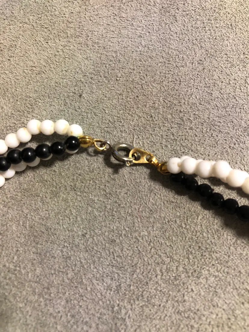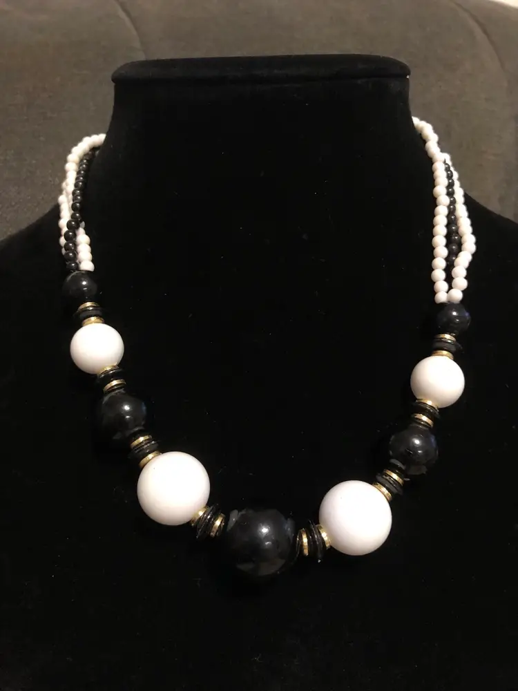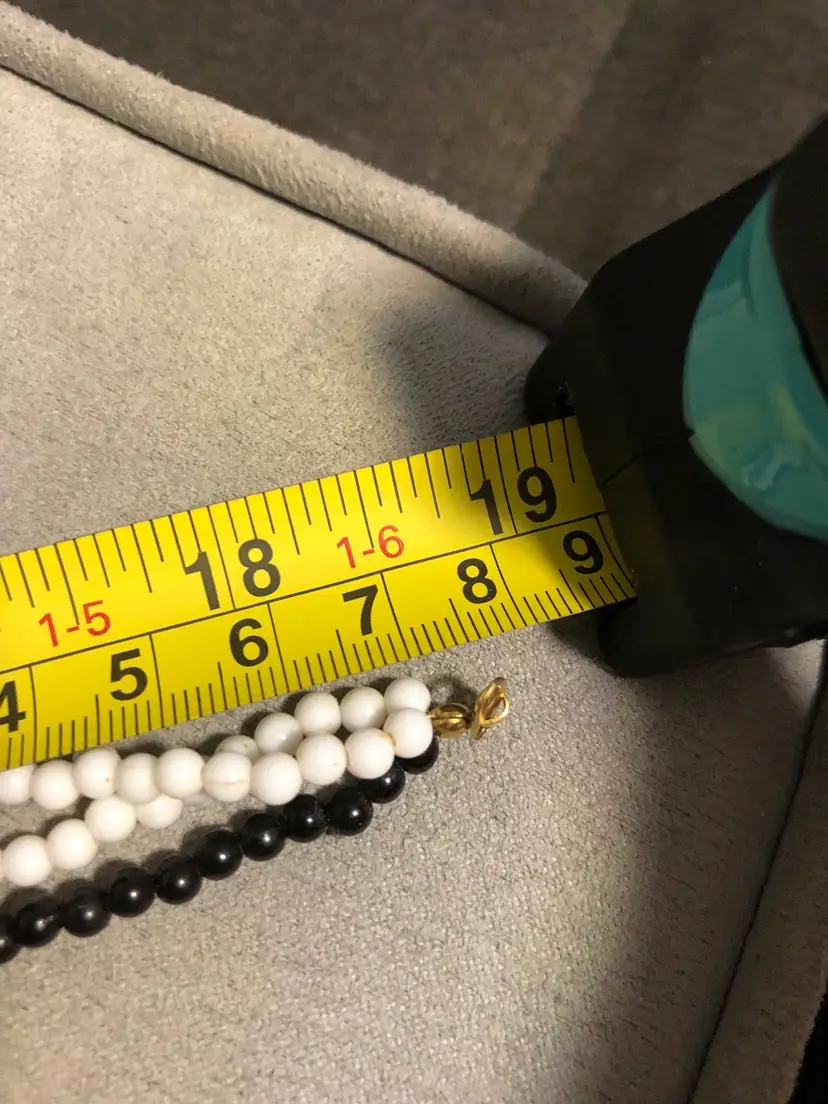 Beautiful necklace About 18.5 inches in length when unclasped Does not include jewelry stand Unsure of who the maker is