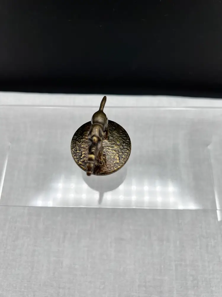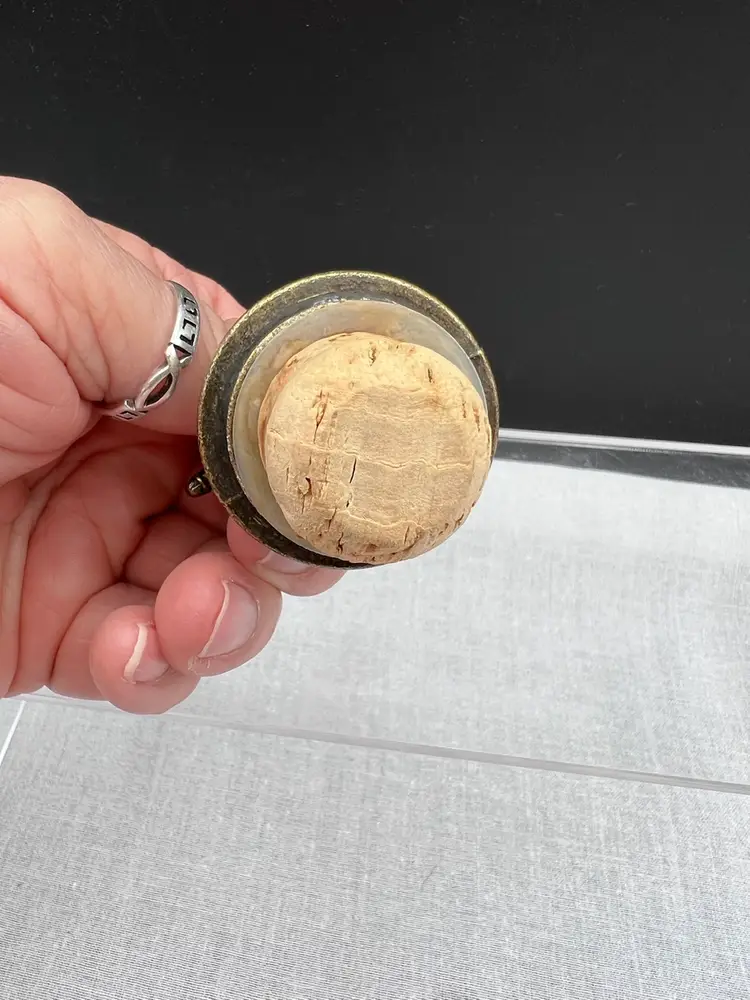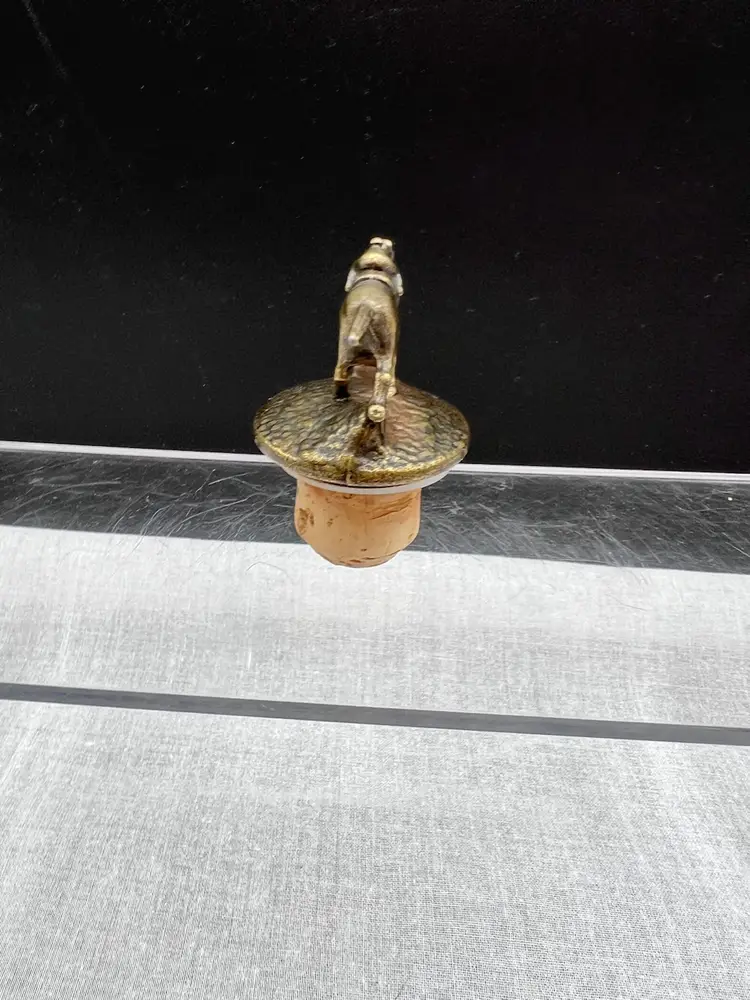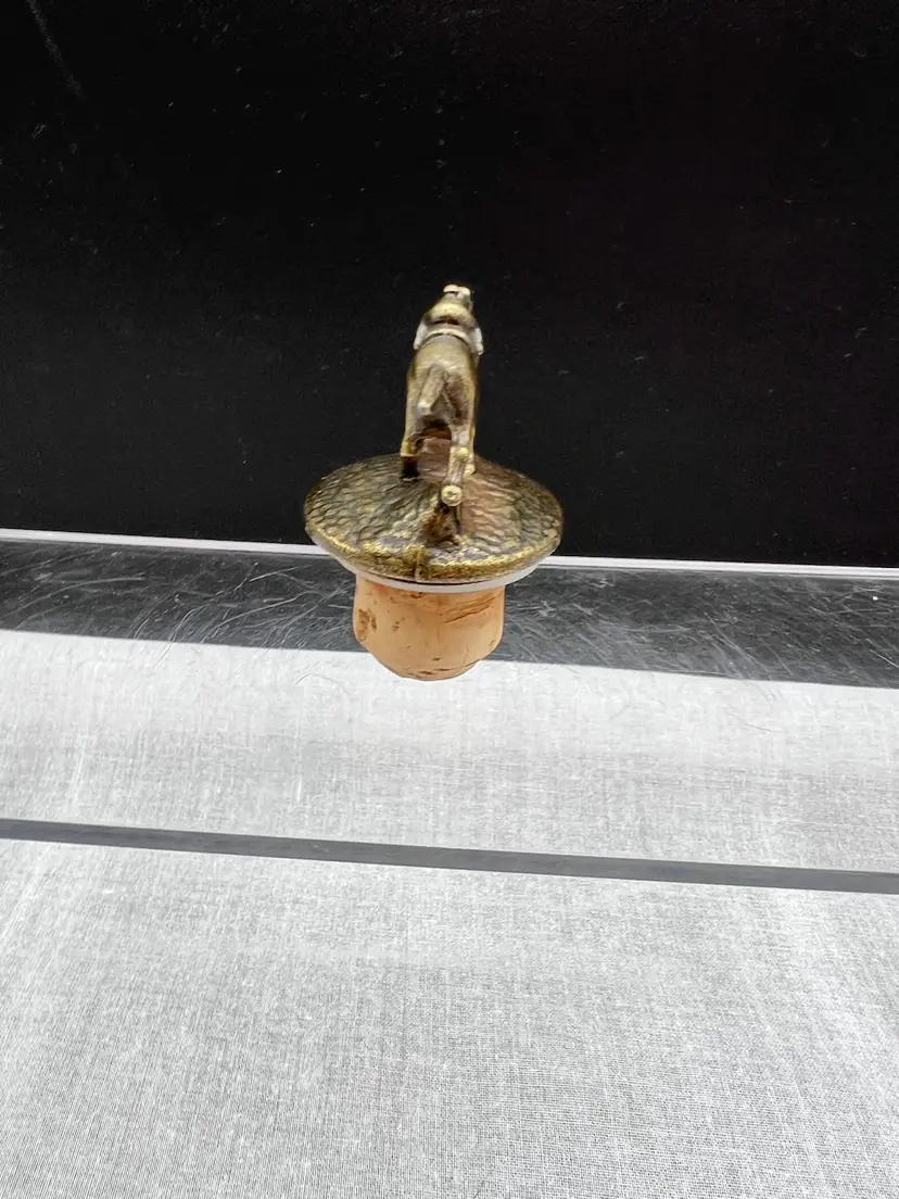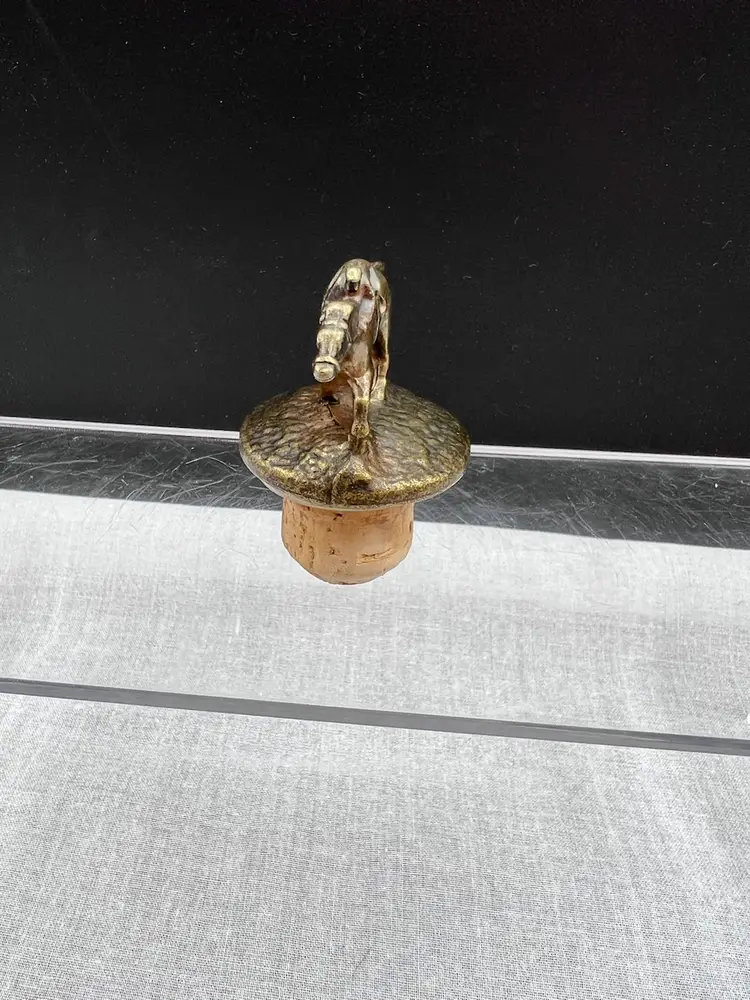 Cute vintage Blanton's bourbon/whiskey collectible cork bottle stopper with brass racehorse and jockey on top.