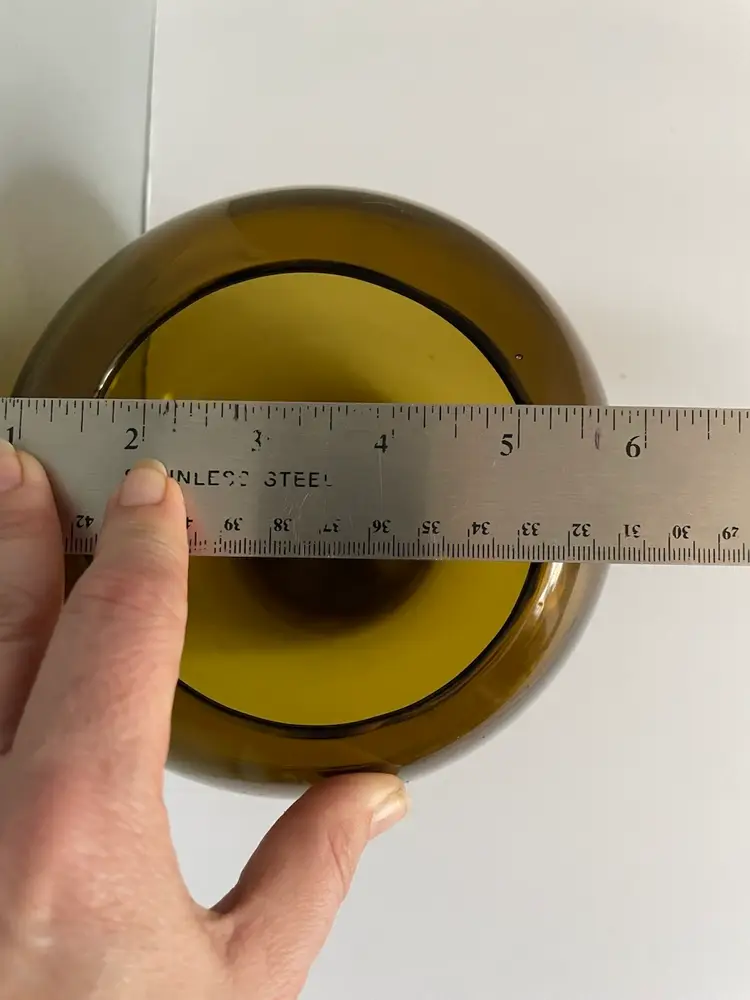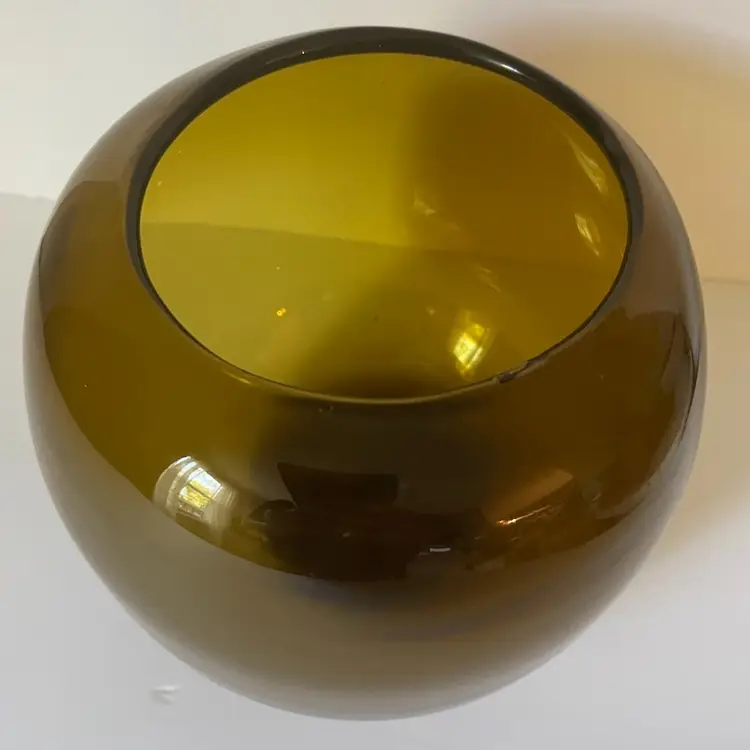 Really nice Blenko globe vase. Dark amber color. Made between 1936-1956. No chips. Appear is to be internal cracks by pontil. See last photo