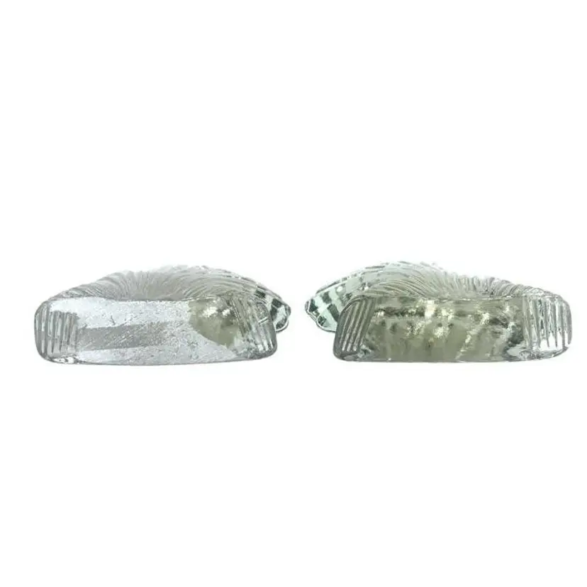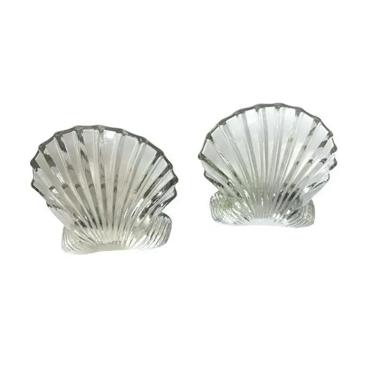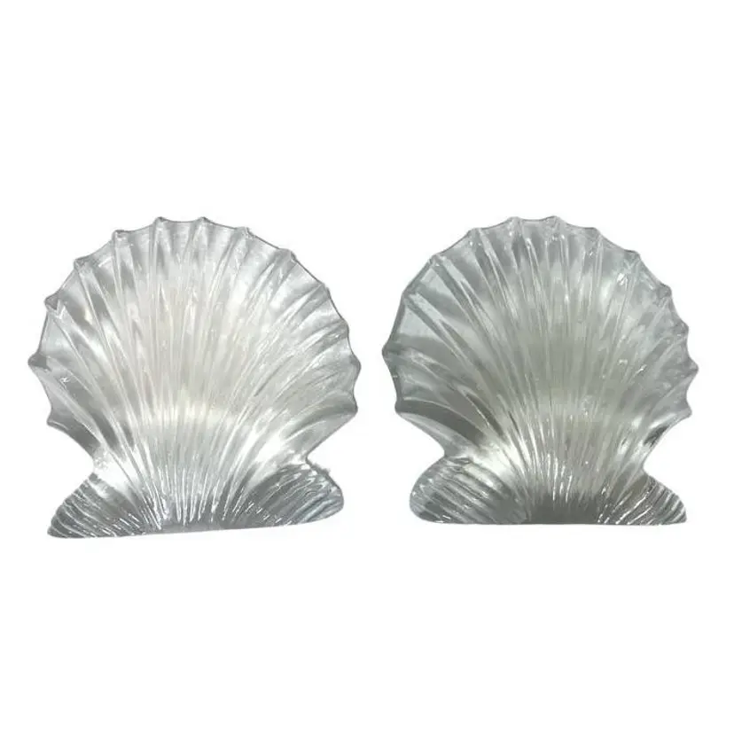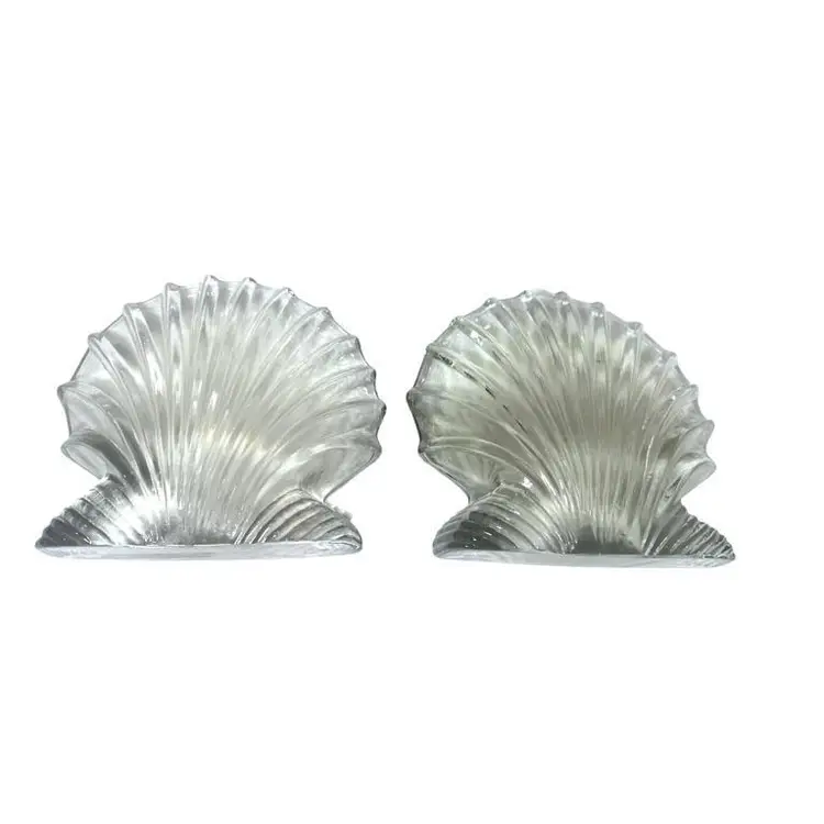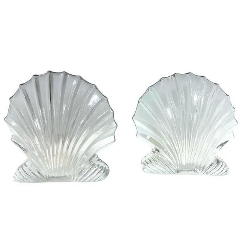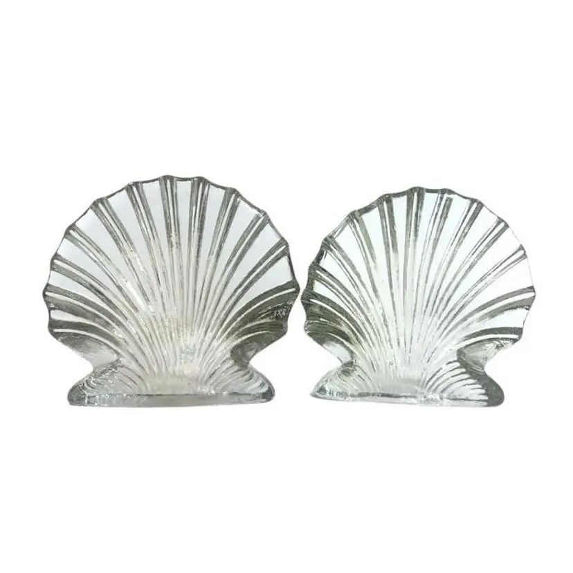 This Blenko Art Glass clear scallop clam shell bookend is a beautiful and unique piece of vintage decor. The bookend is expertly crafted and features a stunning and detailed clam shell design that is both elegant and playful. The clear glass material adds a touch of transparency to the piece, making it a beautiful and versatile addition to any collection. Good vintage condition, no chips or cracks, however, there is surface scratches on the inside of one of the bookends. Dimension 6.75"W x 2"D x 6.5"H