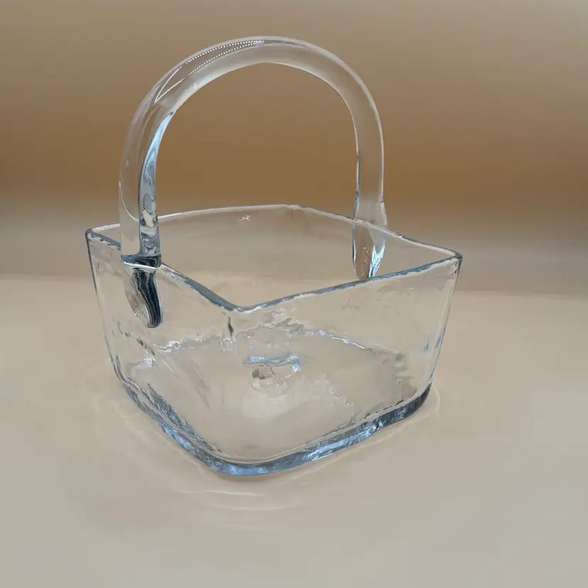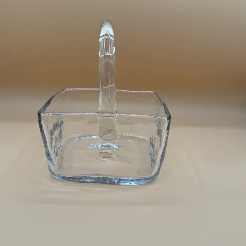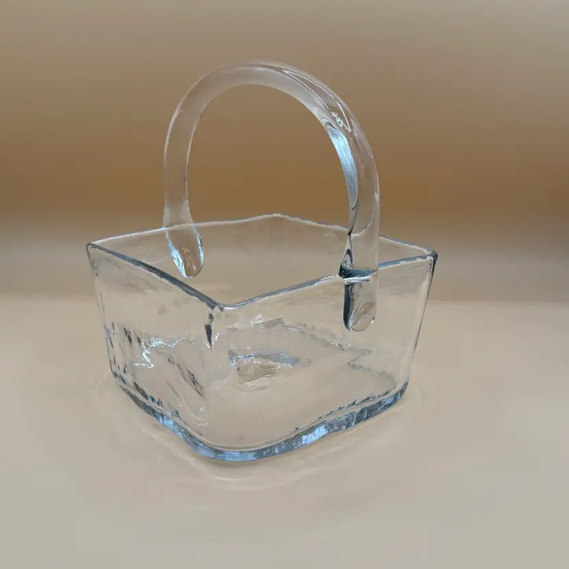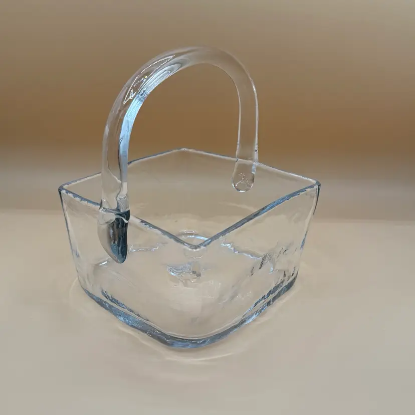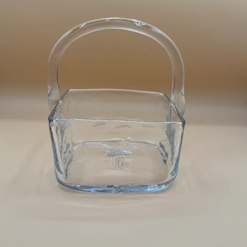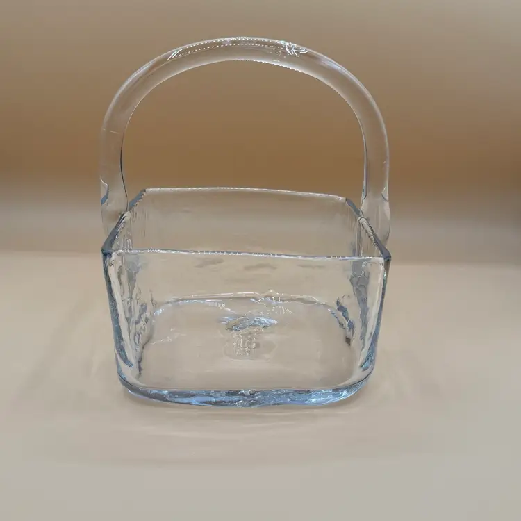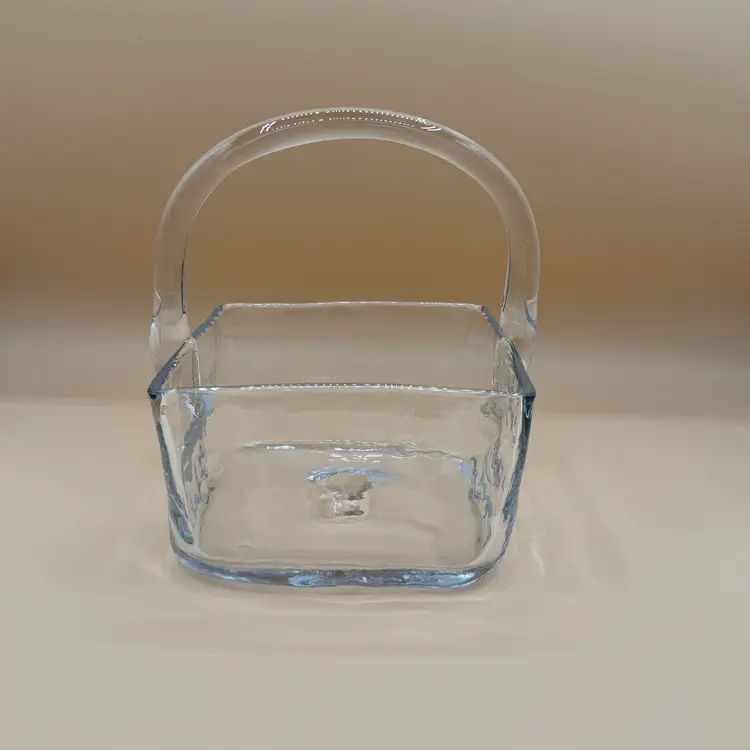 Vintage Blenko Crystal or Clear 7914 Square Basket Dish in Excellent Condition