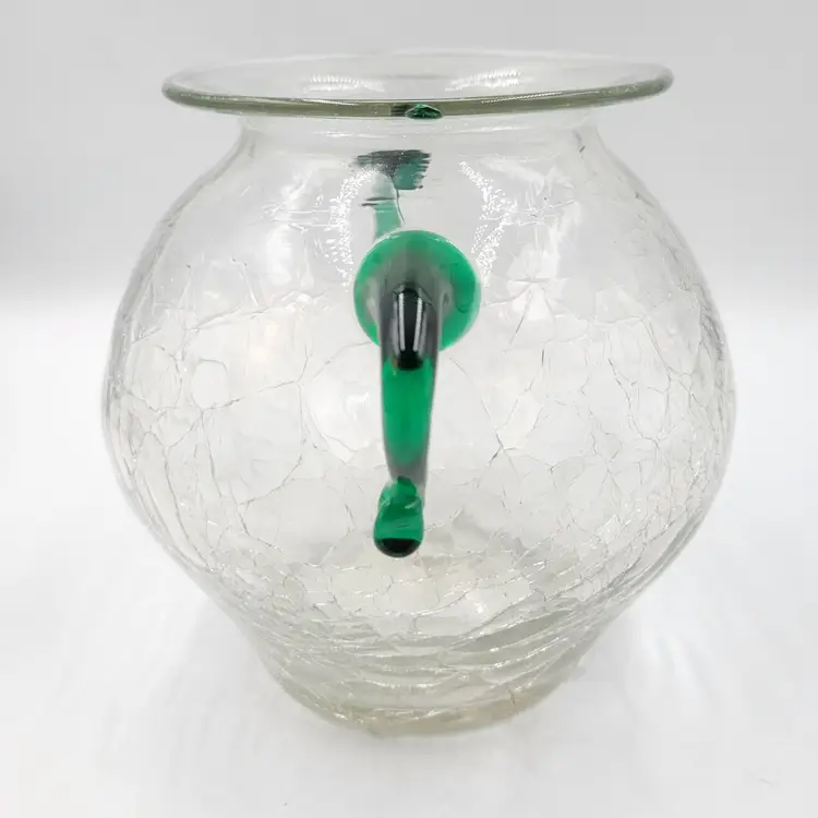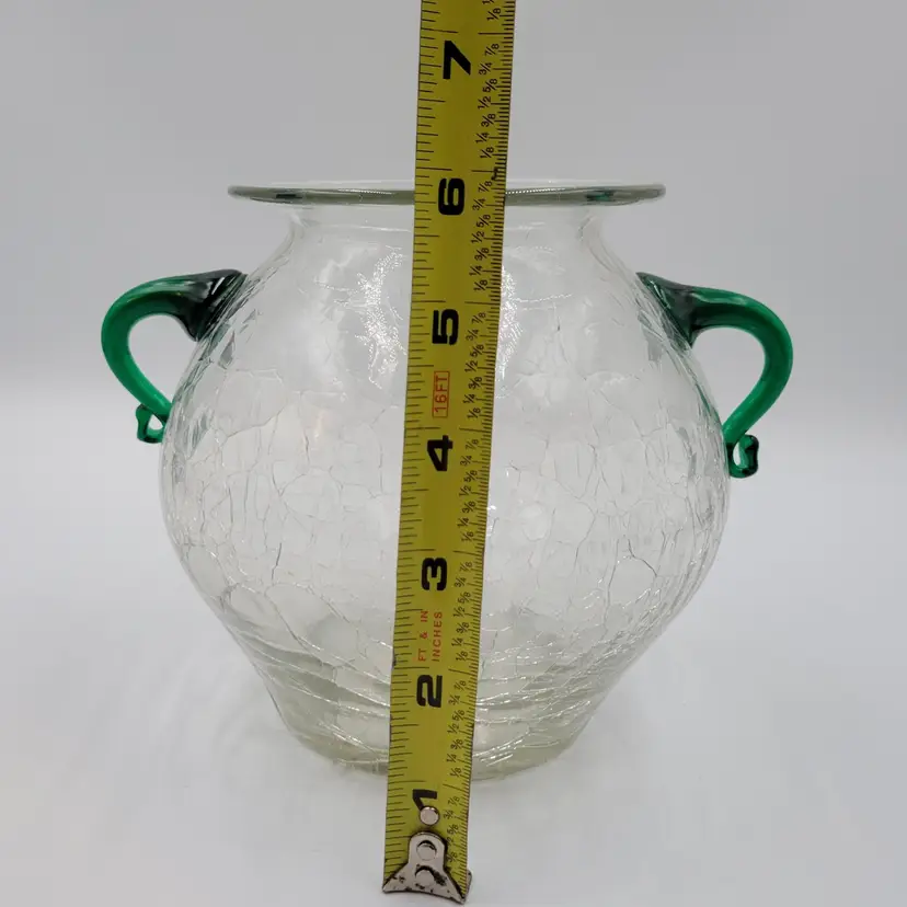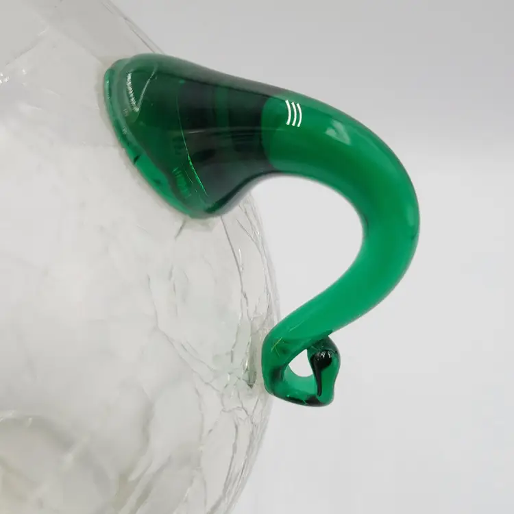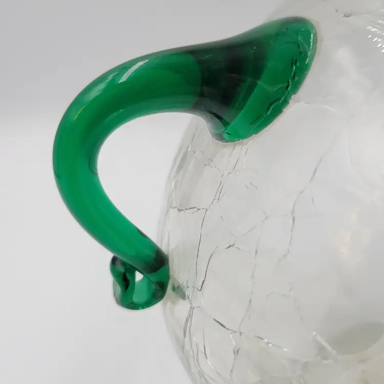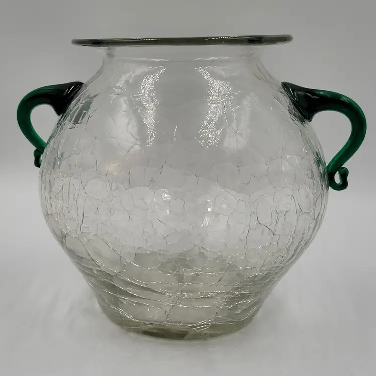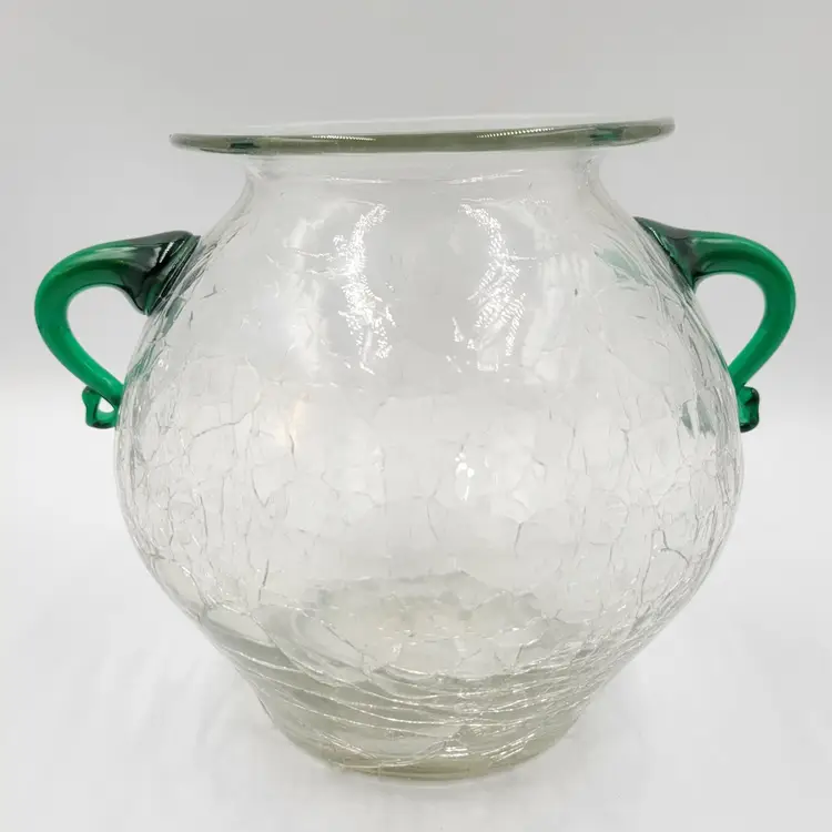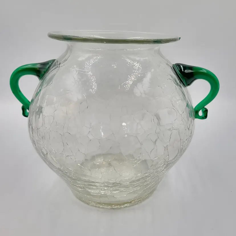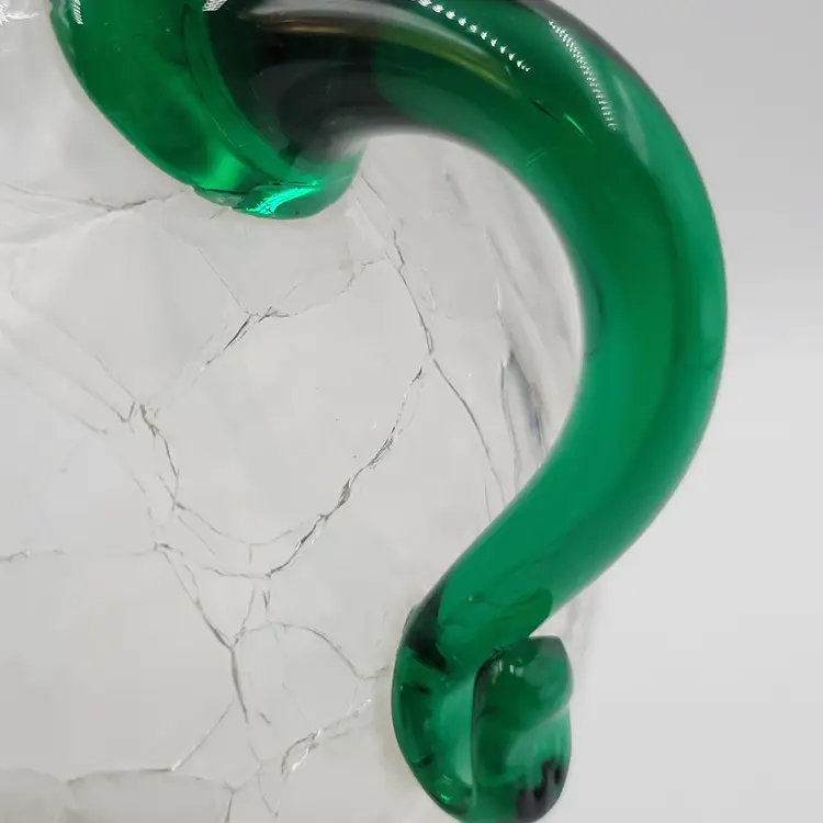 This is a beautiful vintage pre-designer Blenko vase/Urn, catalog #375 in crystal wirh emerald green handles.