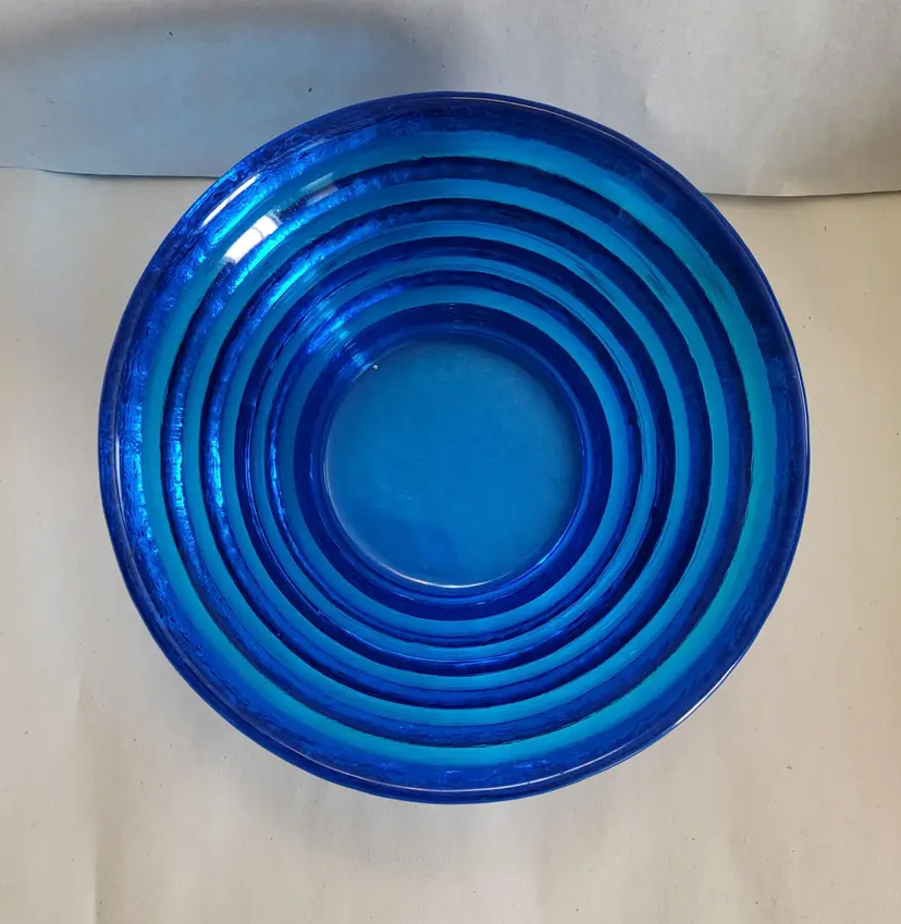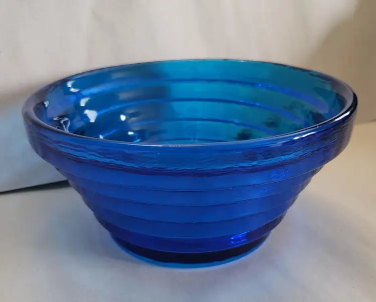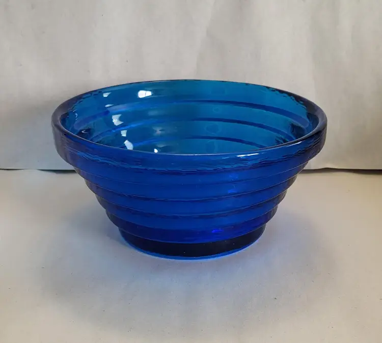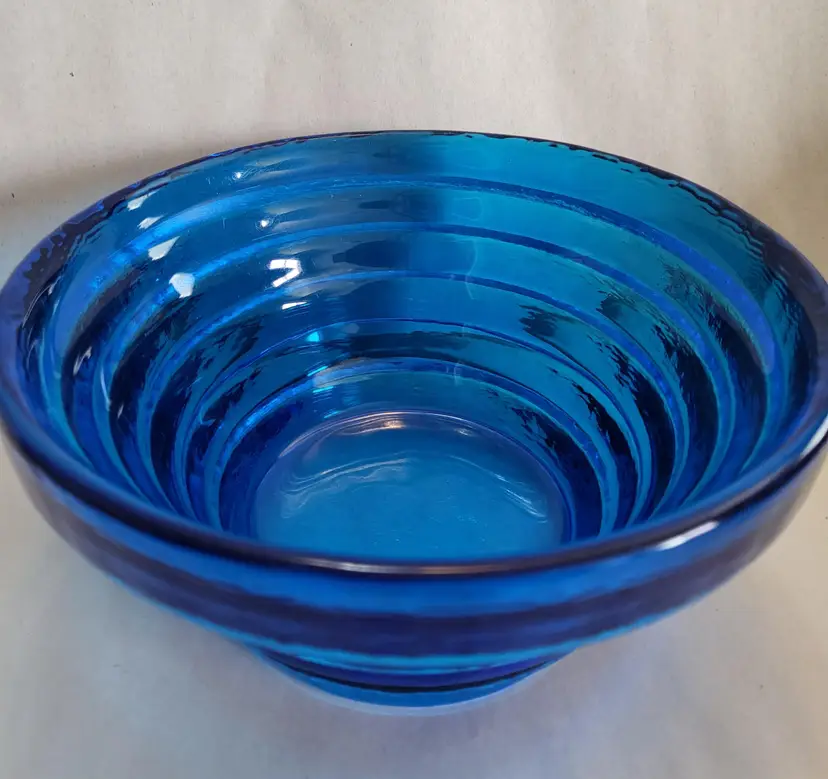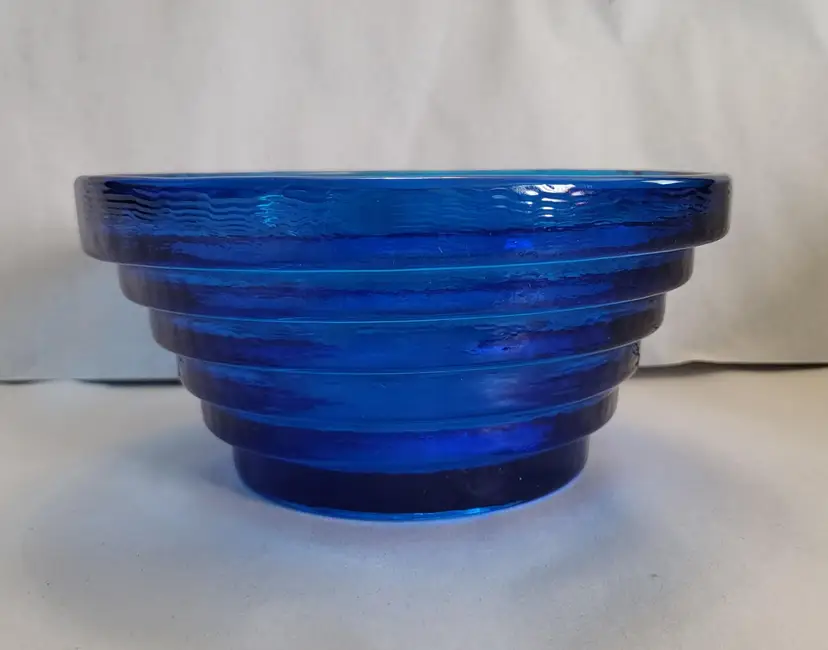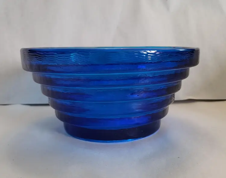This pyramid step bowl is cobalt blue and was made by Blenko.