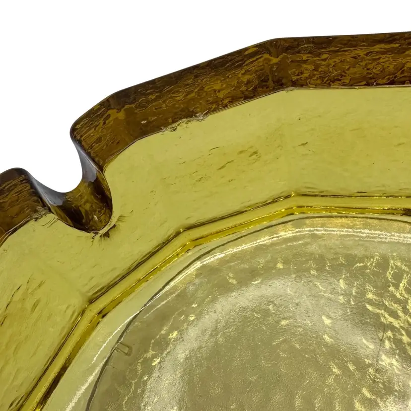 5-6" Octagonal x 1-2" H Small chips noted at side of 1 notch-see photos Vintage Blenko MCM Amber Art Glass Ashtray Octagonal Shape with faceted sides and 4 Notches MCM 1960s- 1970s Great addition to collector or as a catch all dish, trinket dish, or decor Blenko Glass Company founded in 1930 in West Virginia