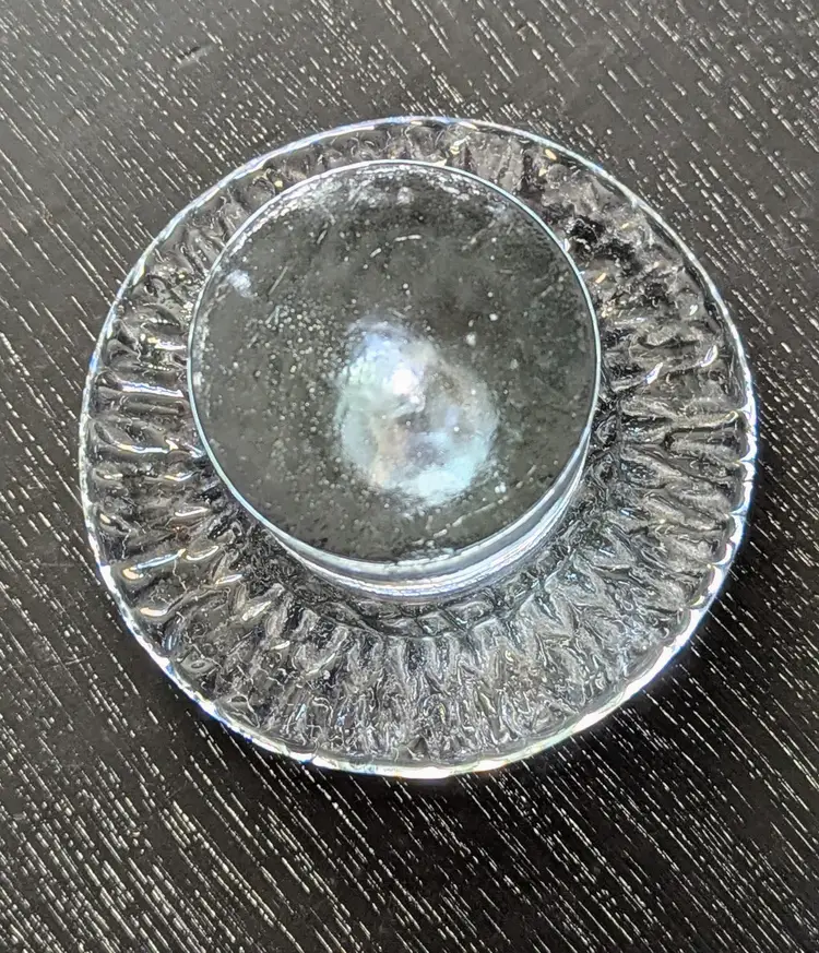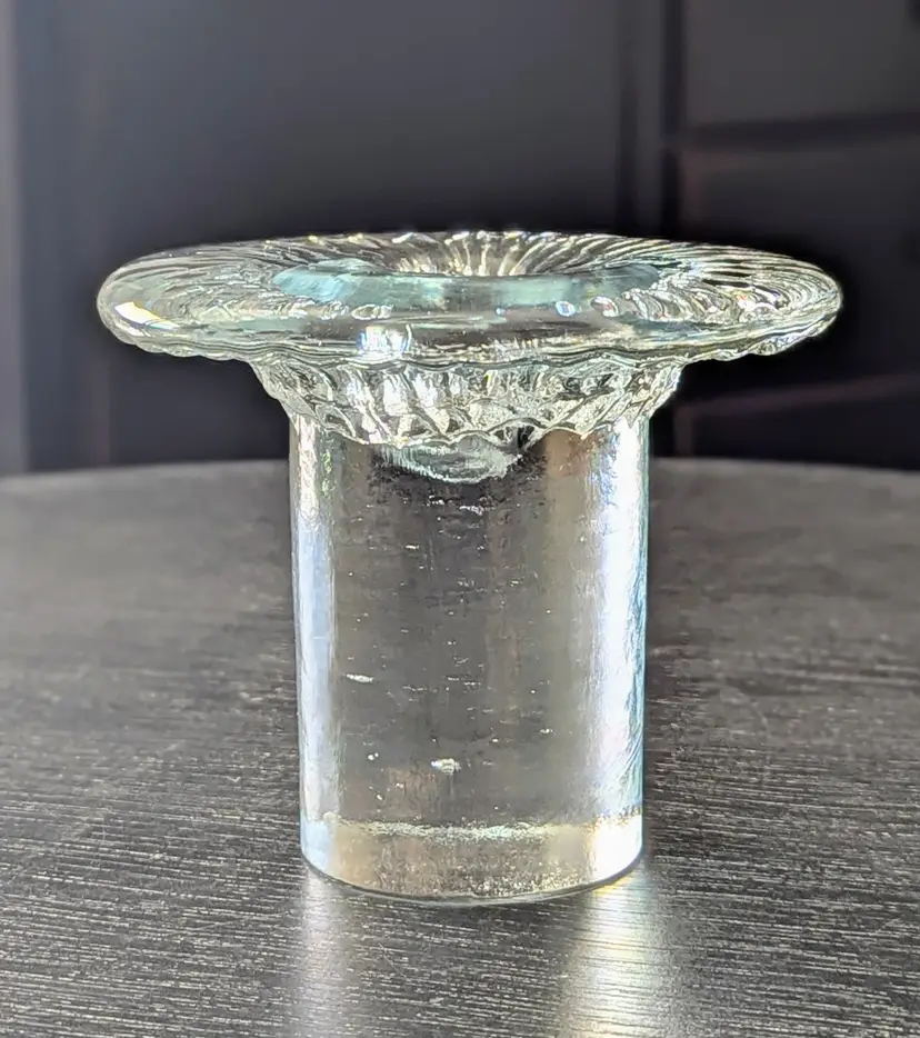 Vintage BLENKO Mushroom Ice Glass Candle Holder Clear Heavy Handcrafted 4" Tall