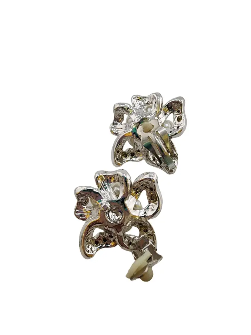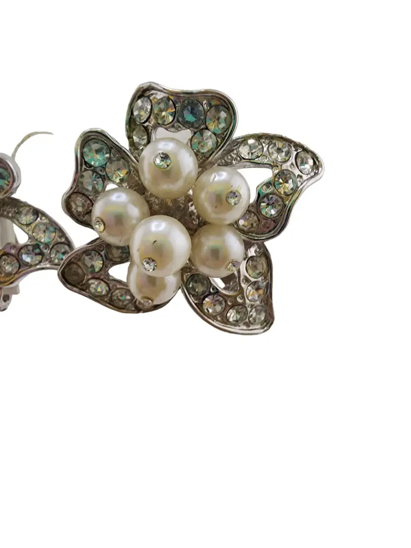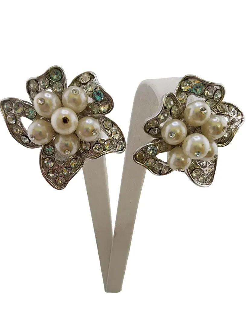 Vintage Blingy Faux Pearl Clip Earrings (A3456)