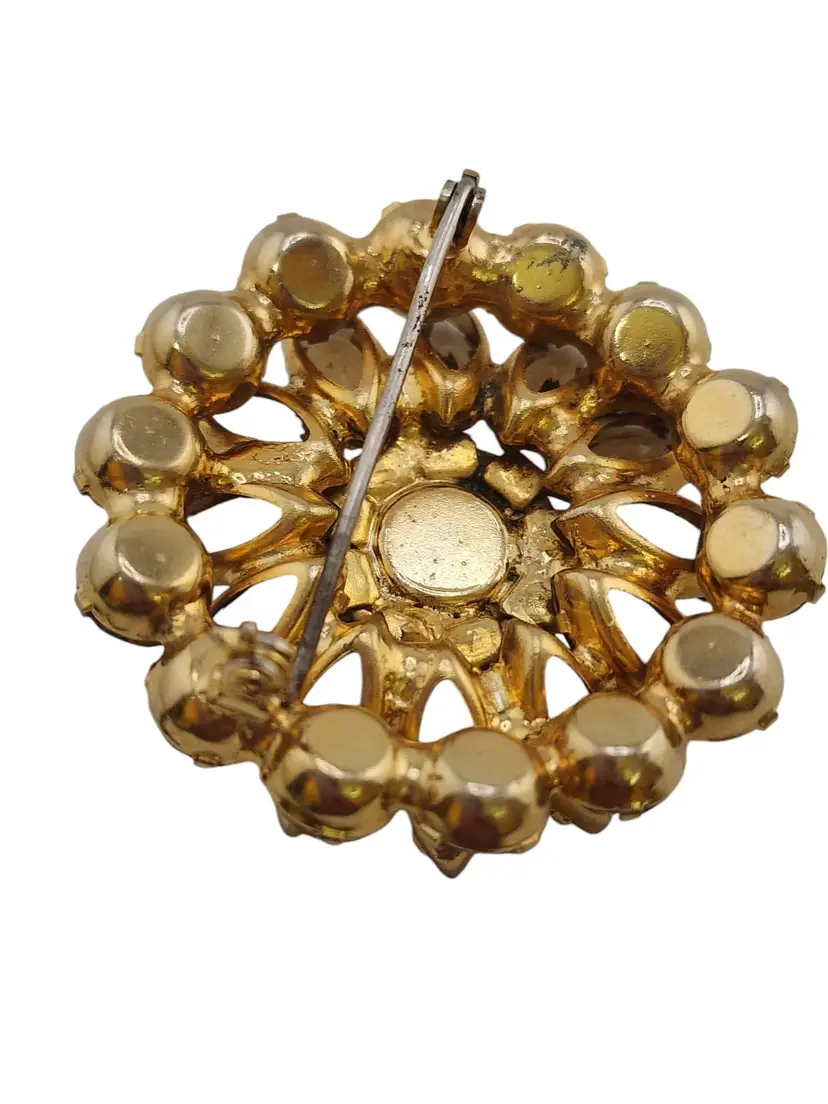 Vintage Blingy Multi tone Topaz Rhinestone Dimensional brooch (A5680)