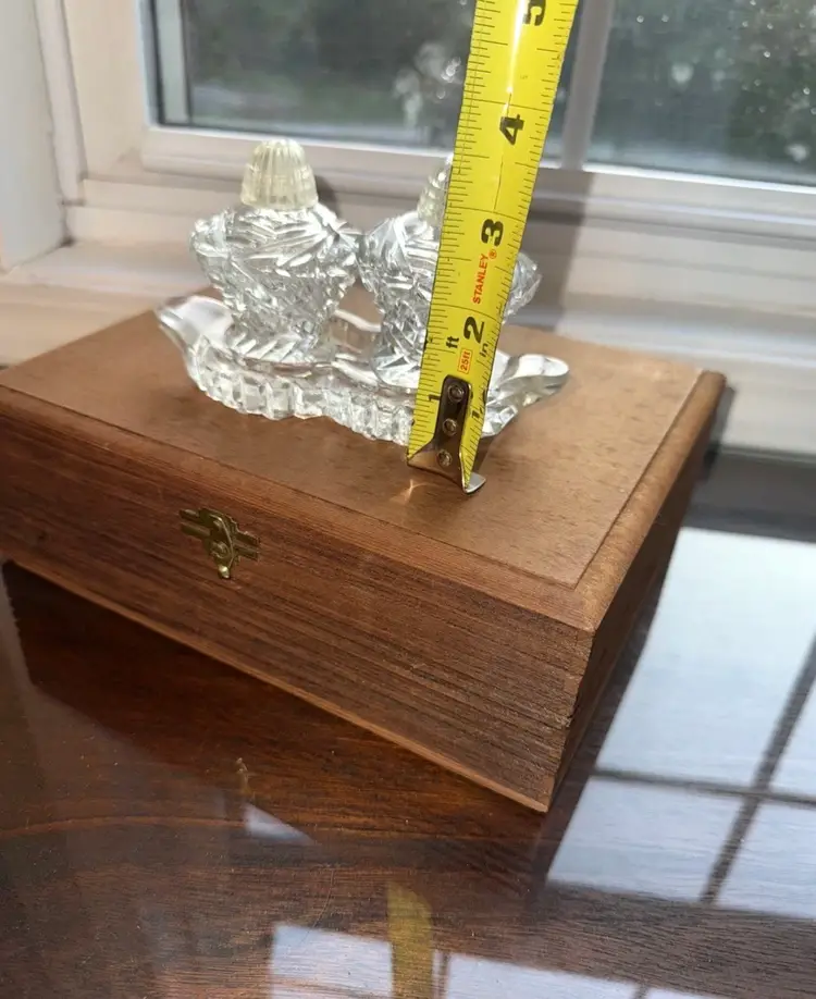 Vintage Block Crystal Salt and Pepper Shakers/ Tray: cottage core, shabby chic