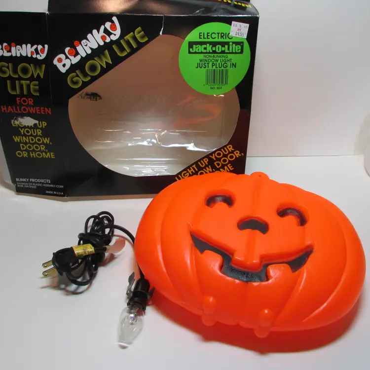 It has been tested, but you will need a night light bulb for the light. The light does not blink. The pumpkin is about 9" x 7" x 3" and the package is about 11" x 9" x 3".