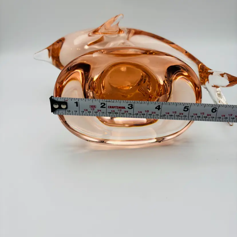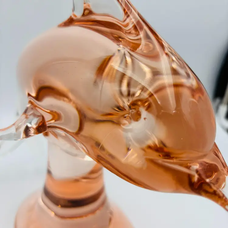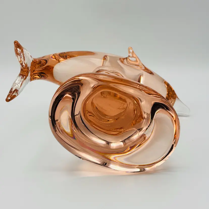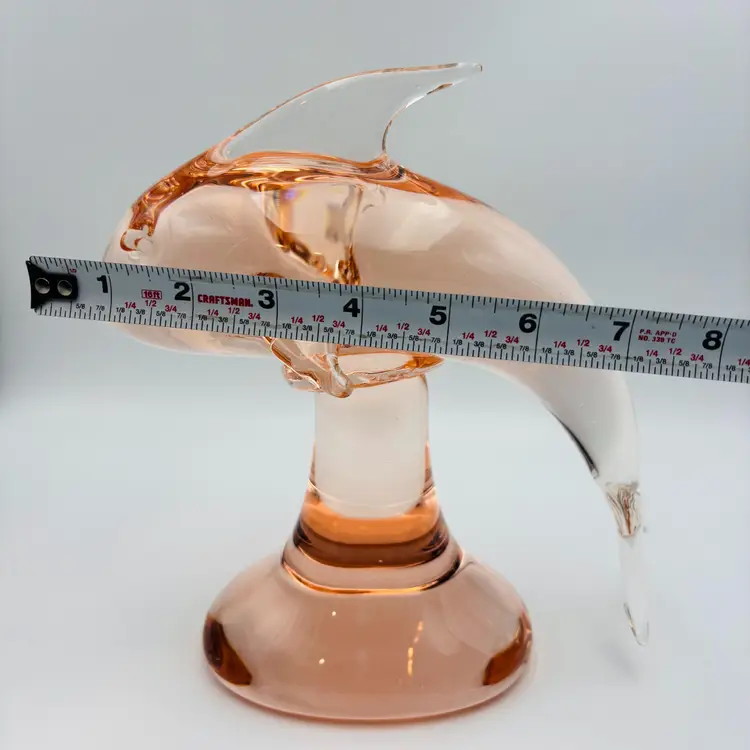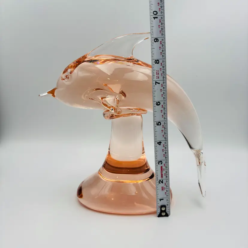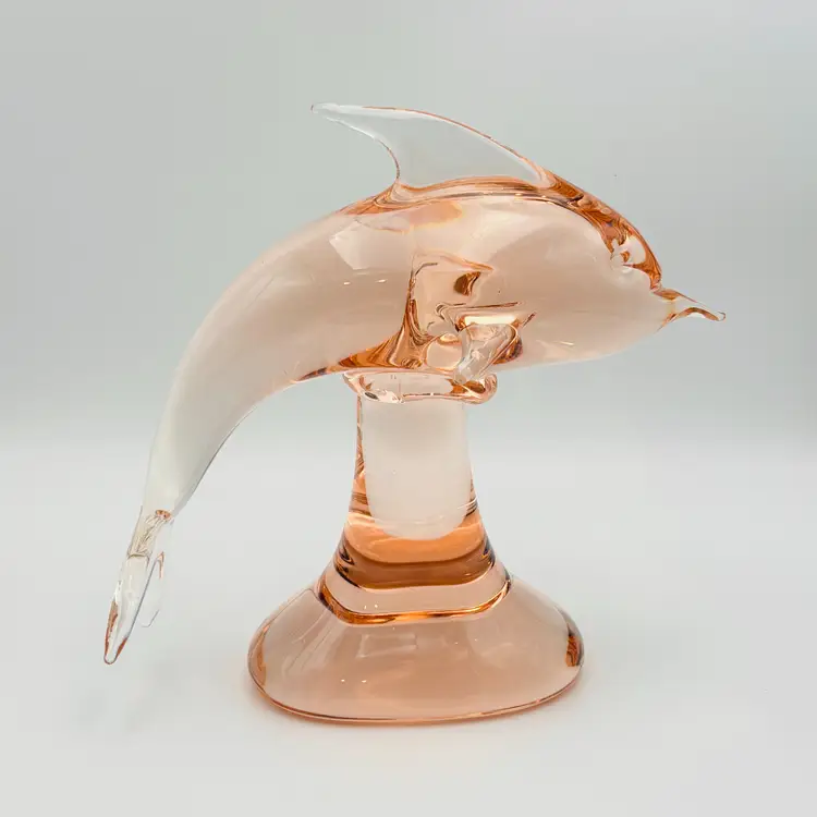 For sale is a Vintage Blown Art Glass Dolphin on Pedestal Figurine Sculpture Handblown Peach