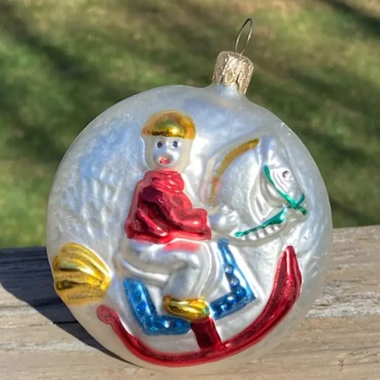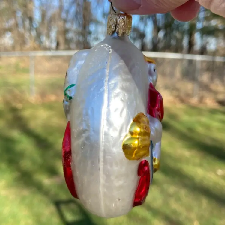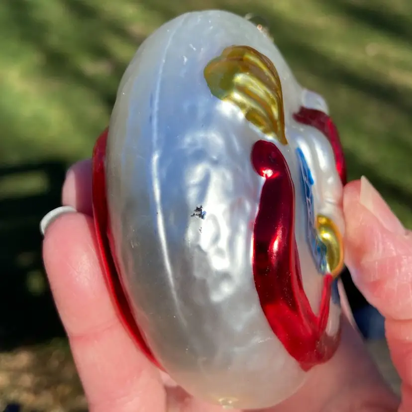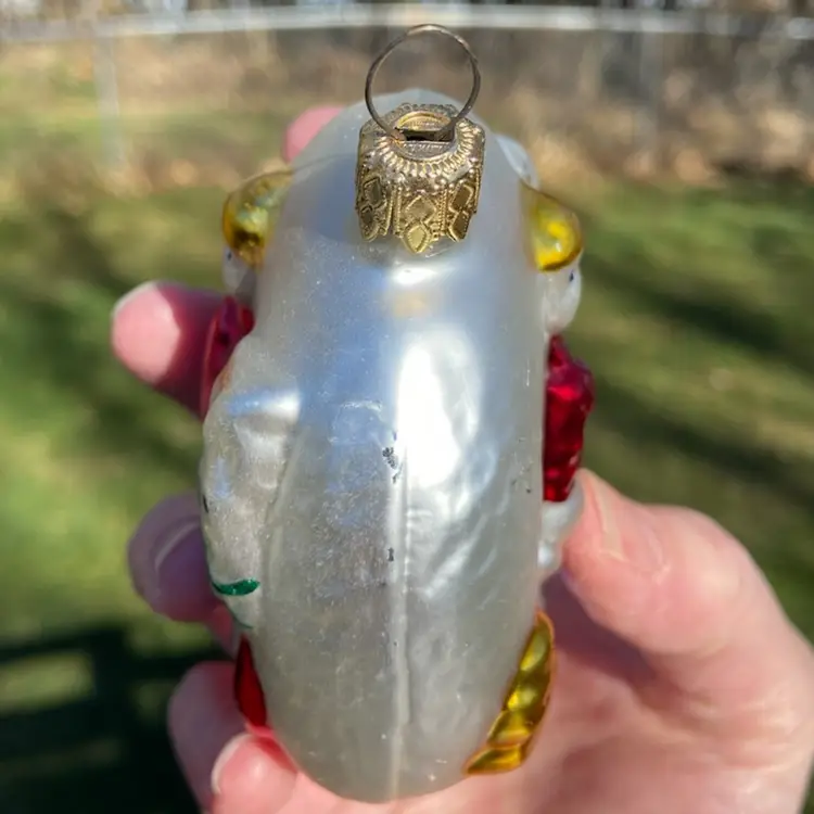 Approx: 4.5”h (including hanger) x 3.5”w x 2”d. Preowned condition. No chips or cracks. A little paint loss. See images as part of description.
