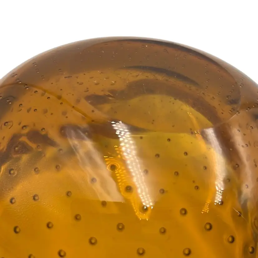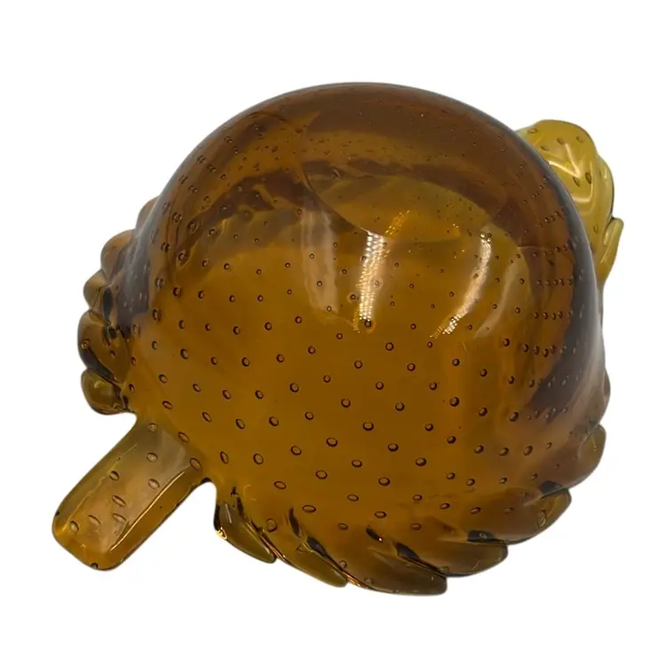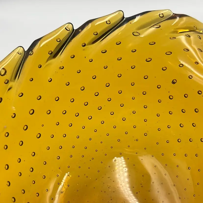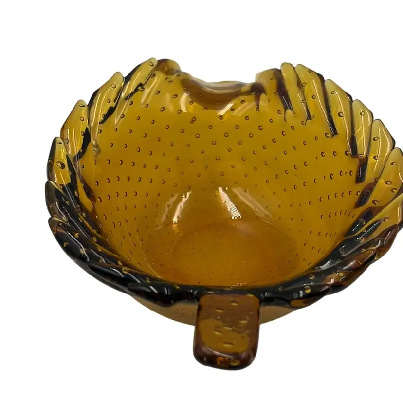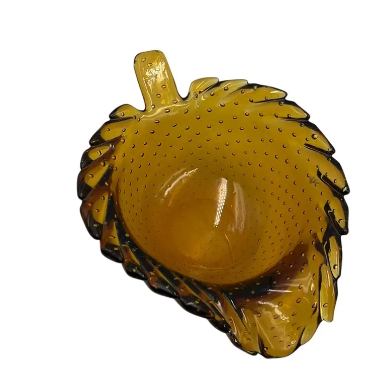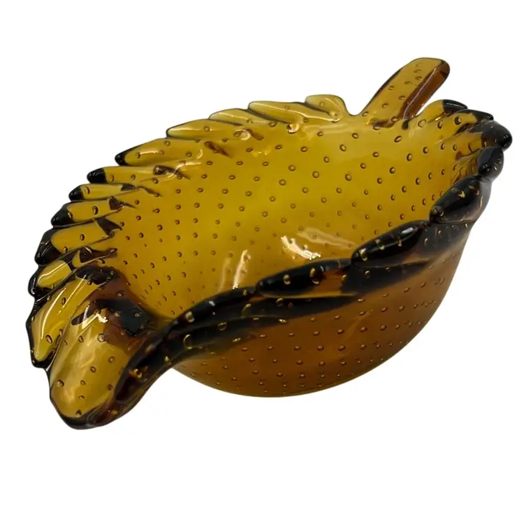 Beautiful caramel amber leafy shape with controlled bubbles and smooth clear bottom. No damage. Use as a bowl or trinket dish.