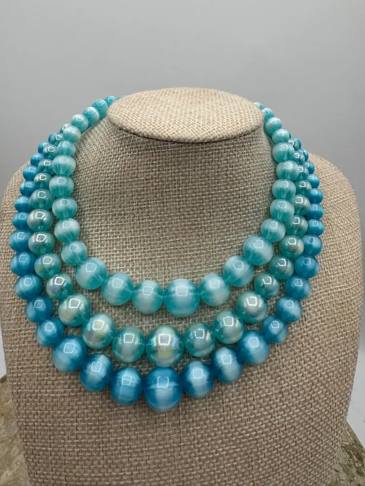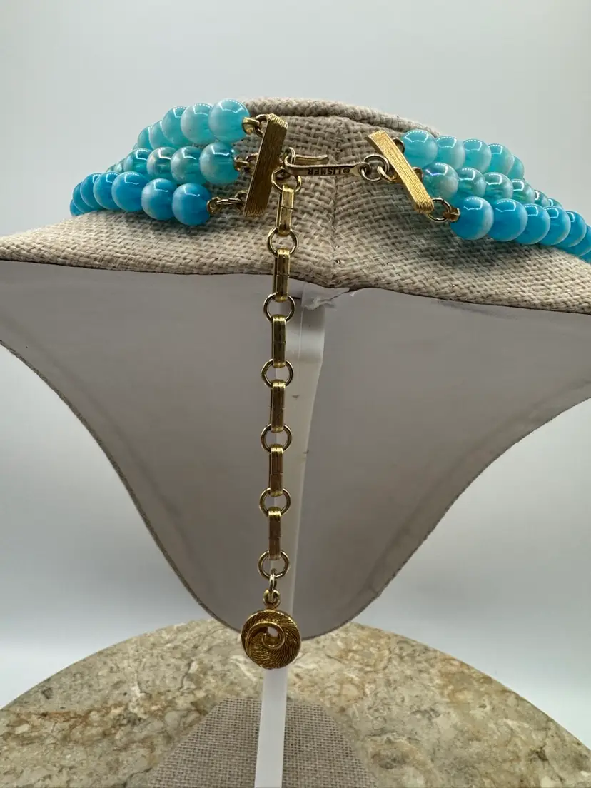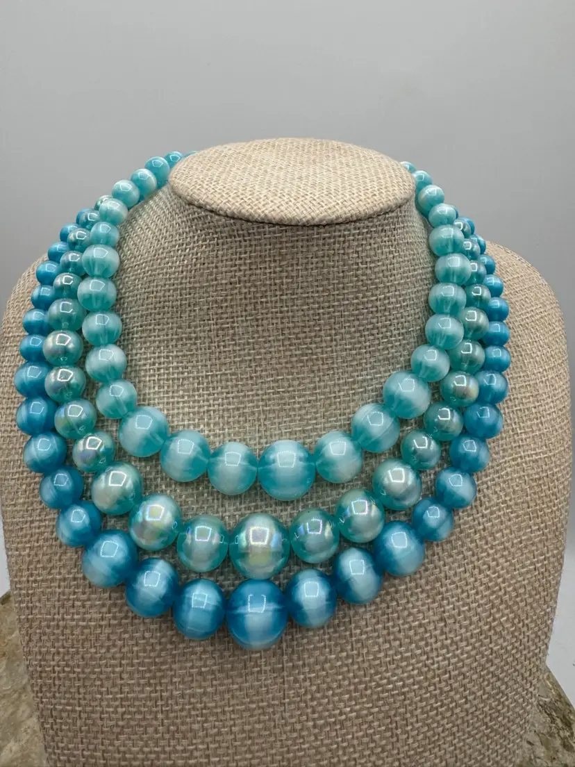 Vintage Blue Acrylic Necklace Marked Lisner. Gorgeous! Good condition. 12” 2 1/2” extender