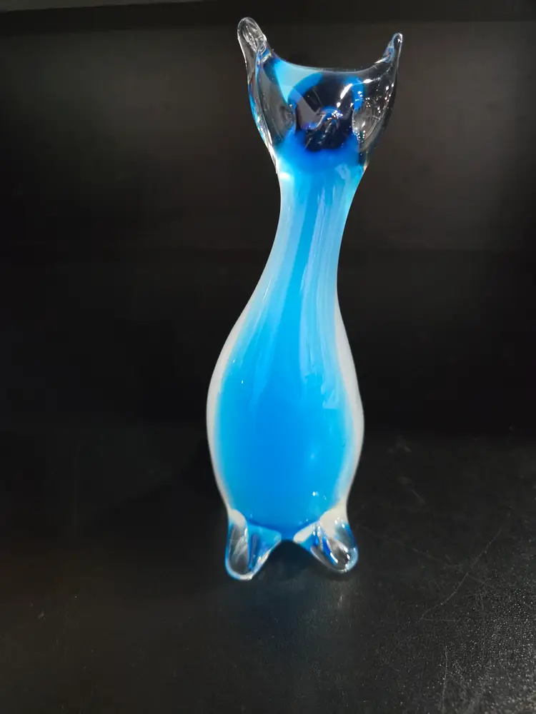 Vintage Blue & Clear Murano Cat figure that would look great in any art glass collection or as a gift for a collector. This has no damages refer to pictures to admire the details of this cat.