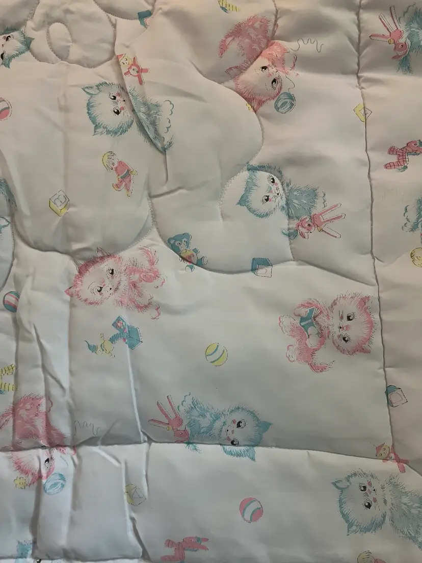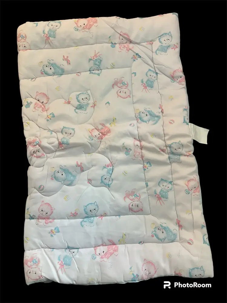 Super soft vintage baby quilt with original tag on blanket. 41.5 inches in length 32.5 in width No rips, tears or stains