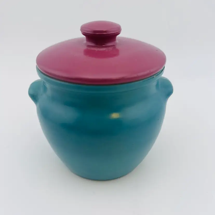 This is so adorable! Love the two tone color scheme. Perfect for your vintage kitchen. Great condition besides normal wear on base.