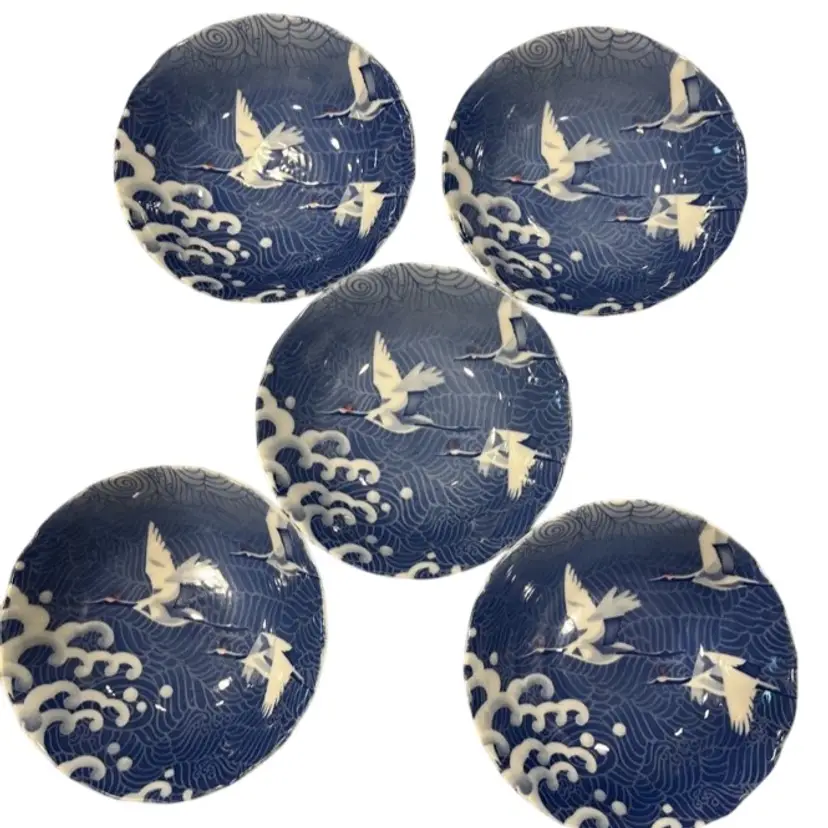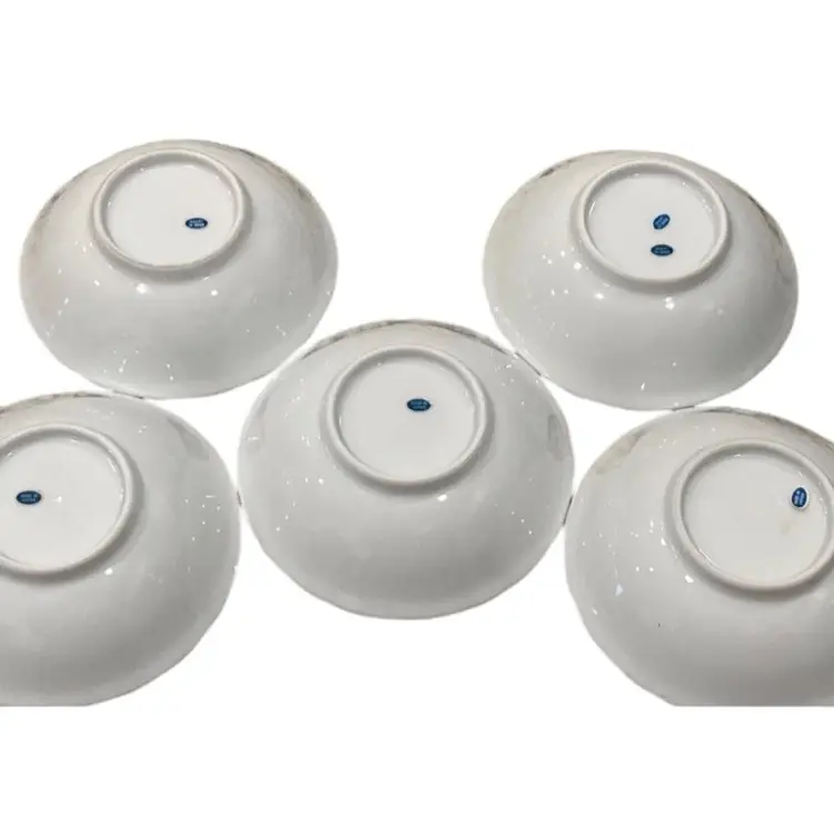 This is a never used set of Japanese small porcelain rice bowls. They were purchased at a warehouse sale that was used by the Charlotte Opera House as props only. Each one still has the original “Made in Japan” sticker on the bottom. They are all in excellent condition. 5.5 dia 1.75” ht