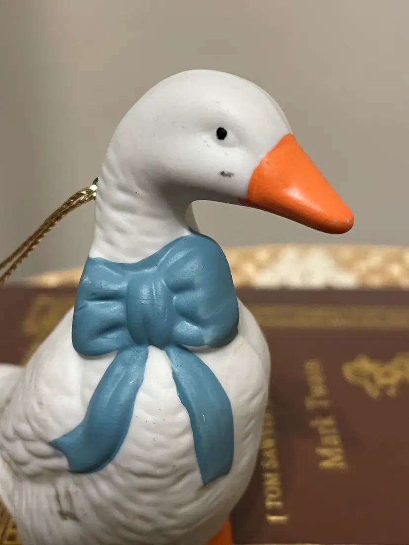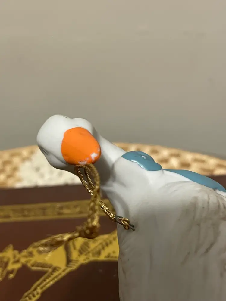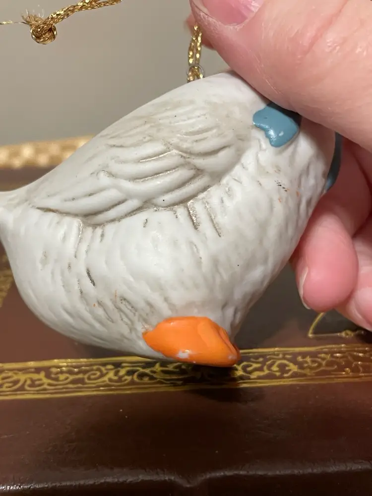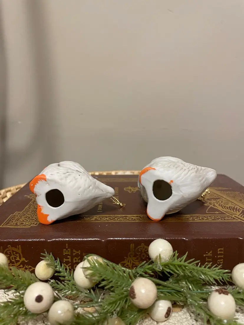 Great vintage condition Set of two Bisque porcelain No chips or cracks Tiny mark on one goose, tiny bit of paint loss on beak and foot of other goose. 3.5” tall 0001225