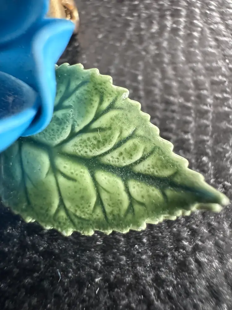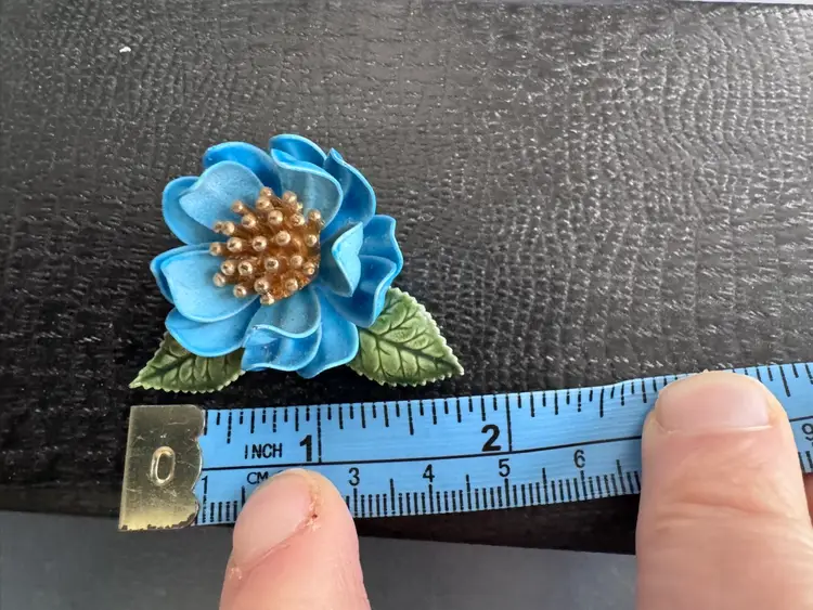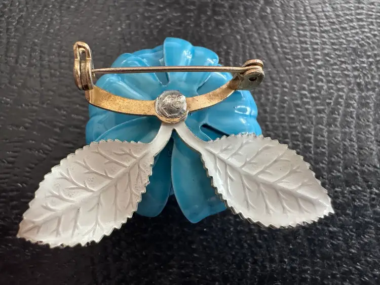 This vintage brooch captures the essence of timeless elegance with its blue enamel flower, accented by lush green leaves and a radiant gold-tone center. Perfect for adding a touch of sophistication to any outfit, this floral brooch is an ideal accessory for weddings, garden parties, or any occasion where you want to make a statement. Its vintage charm and vibrant colors make it a versatile piece for any jewelry collection.