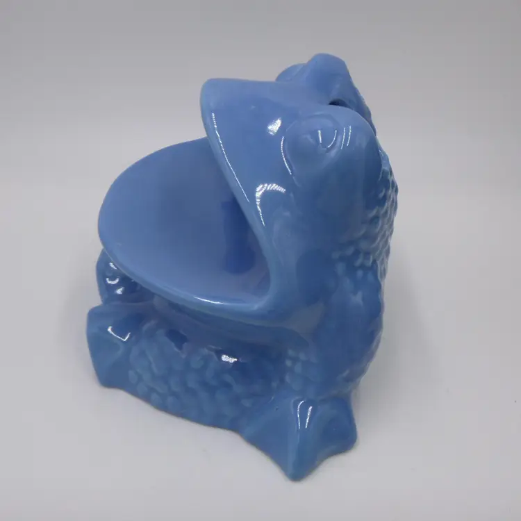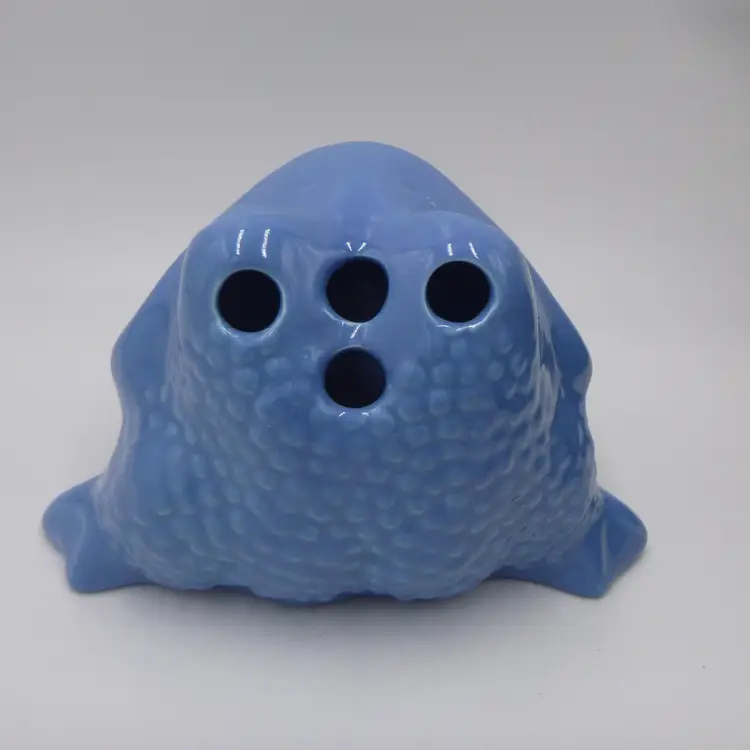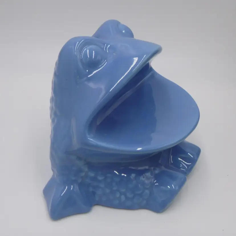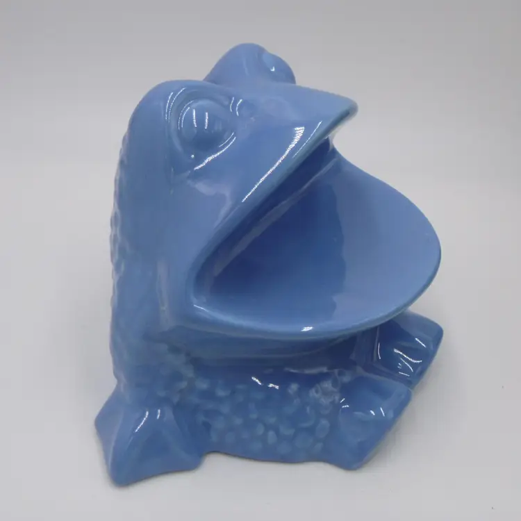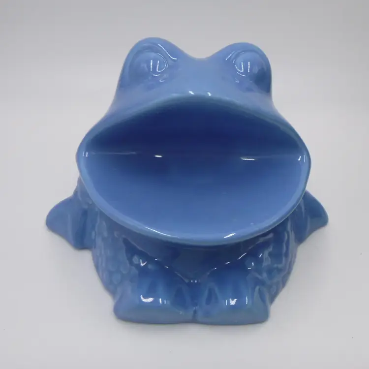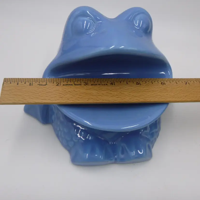 Vintage Blue Frog Toothbrush soap Holder ribbit measures 5" tall 7 1/2" wide at base mouth opening 5" x 3" perfect for bathroom or office to hold pen/pencils and sticky note pads #frog #nature #blue