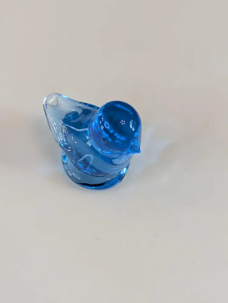 Add a touch of charm to your home with this vintage blue glass bird figurine. Handcrafted with care, this art glass piece features a vibrant blue hue and intricate details. Perfect for collectors of bird decor or as a thoughtful gift for a loved one. Stands approximately 2 inches tall and is in very good condition. Please let me know if you have any questions! I'm happy to accept returns if you are unhappy with your purchase (buyer pays return shipping) and I also refund shipping overages.