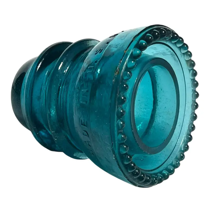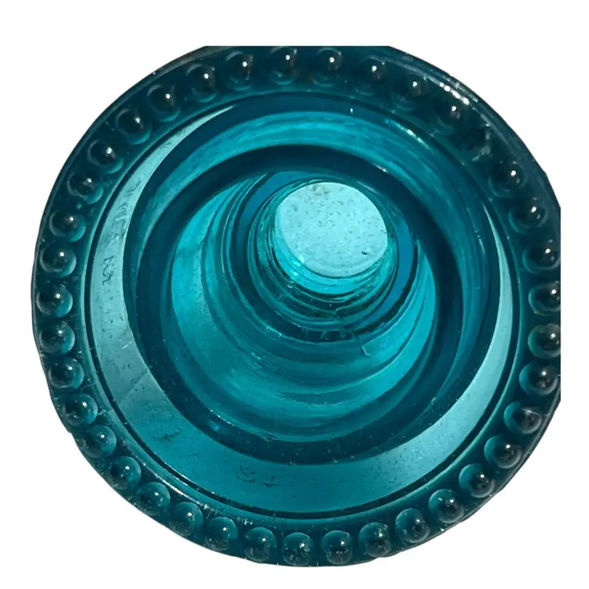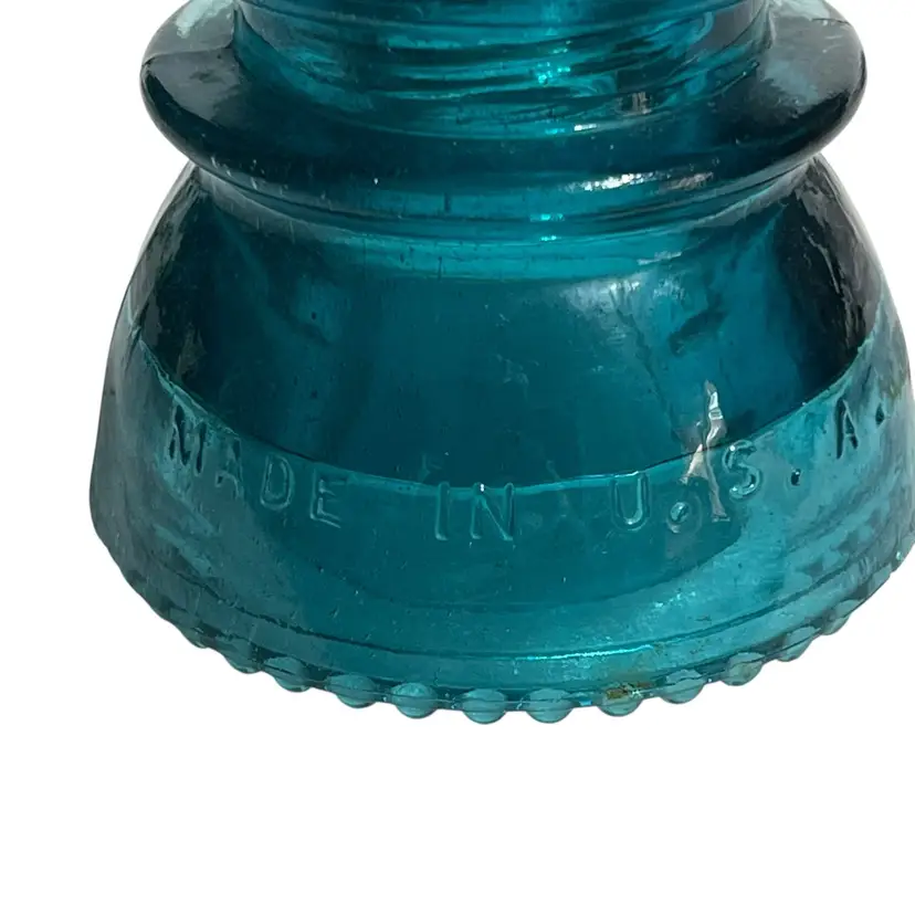 Vintage blue green teal glass insulator 4.5" x 3.75" made in the USA