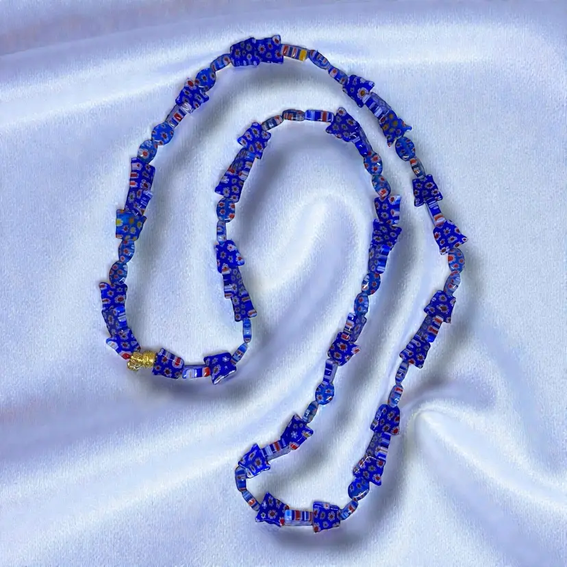 Vintage Blue Italian Glass Milliefiori Butterfly Necklace. No Clasp.