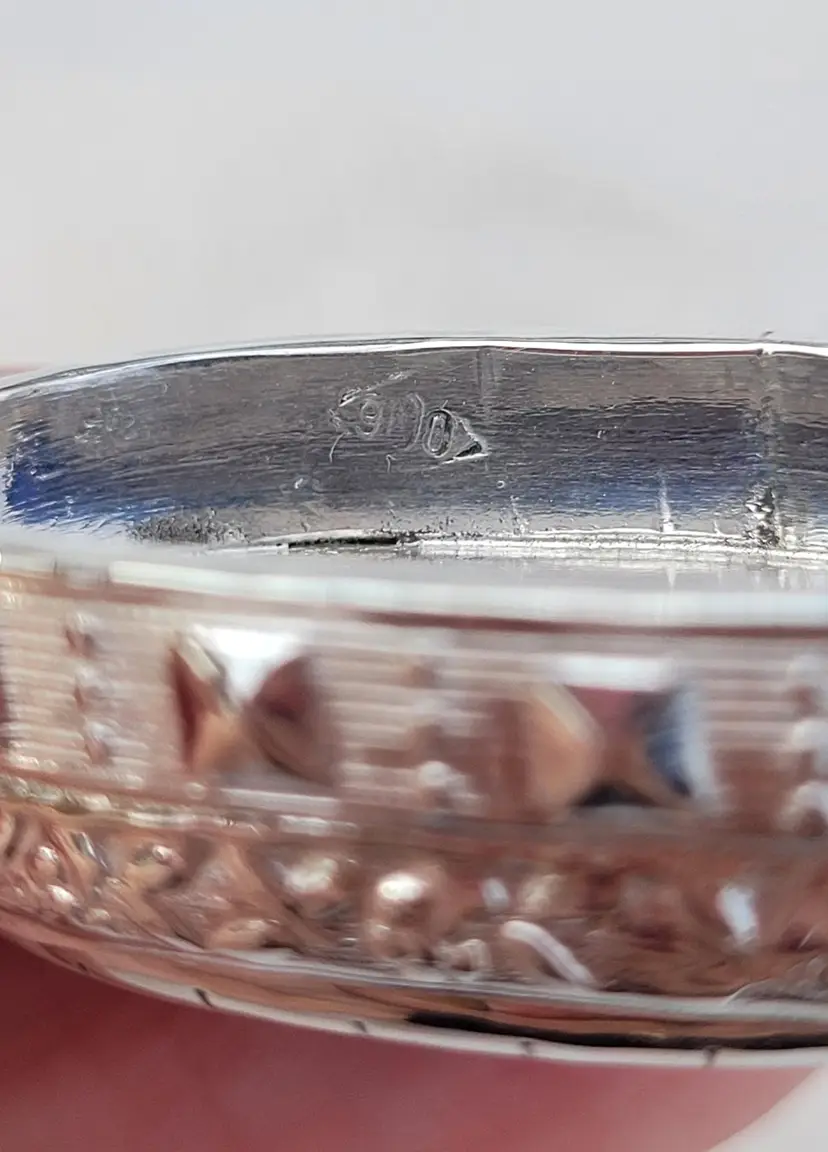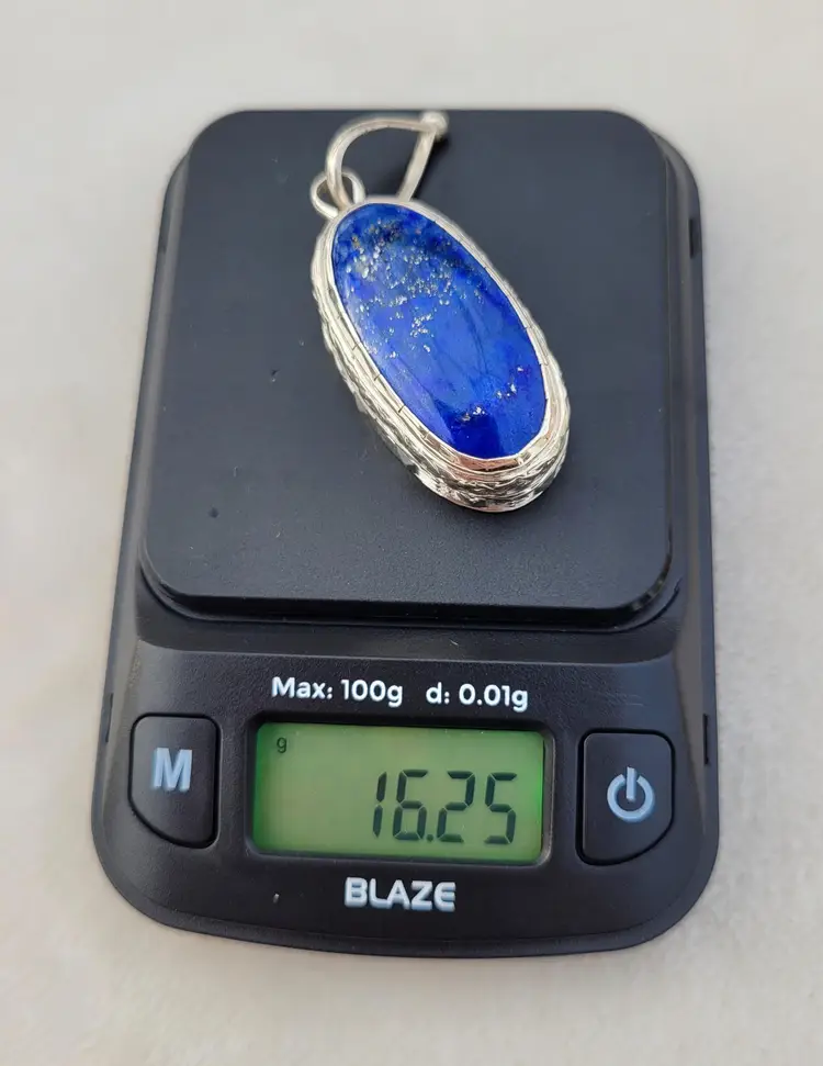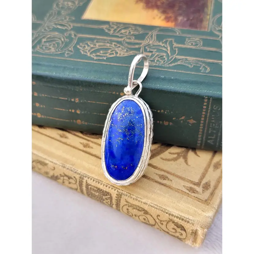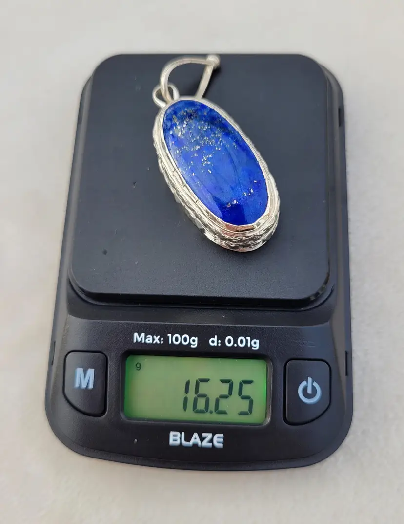 Vibrant blue lapis cabachon set in pure 900 silver, from an estate and circa 1990s. It is in good condition, please see pictures for details and measurements. Does not include a chain.