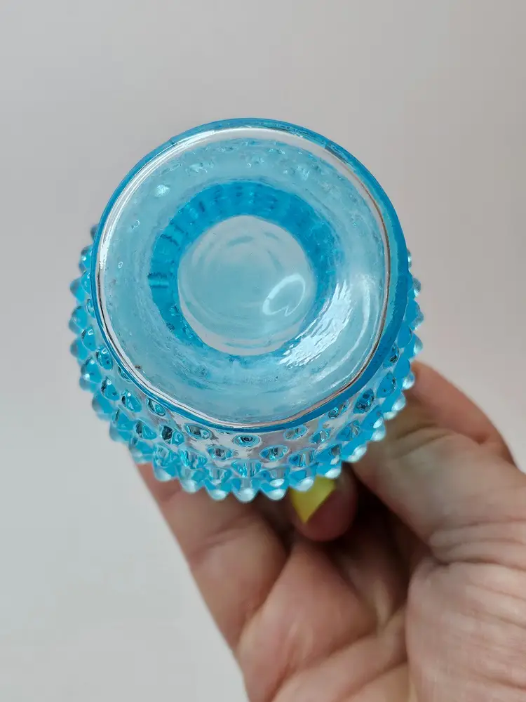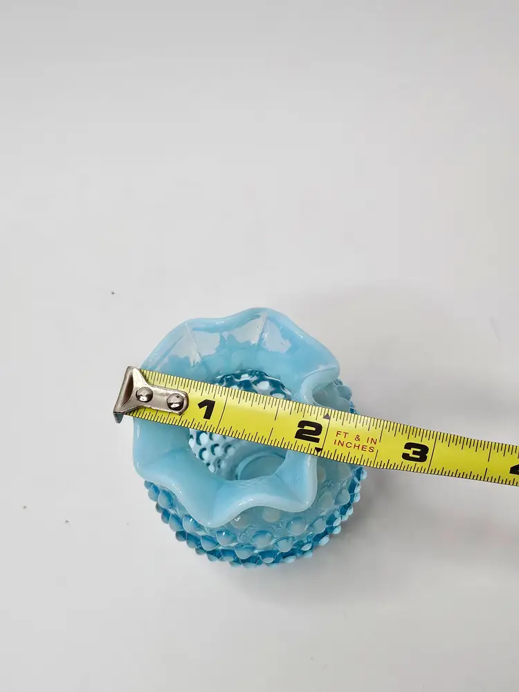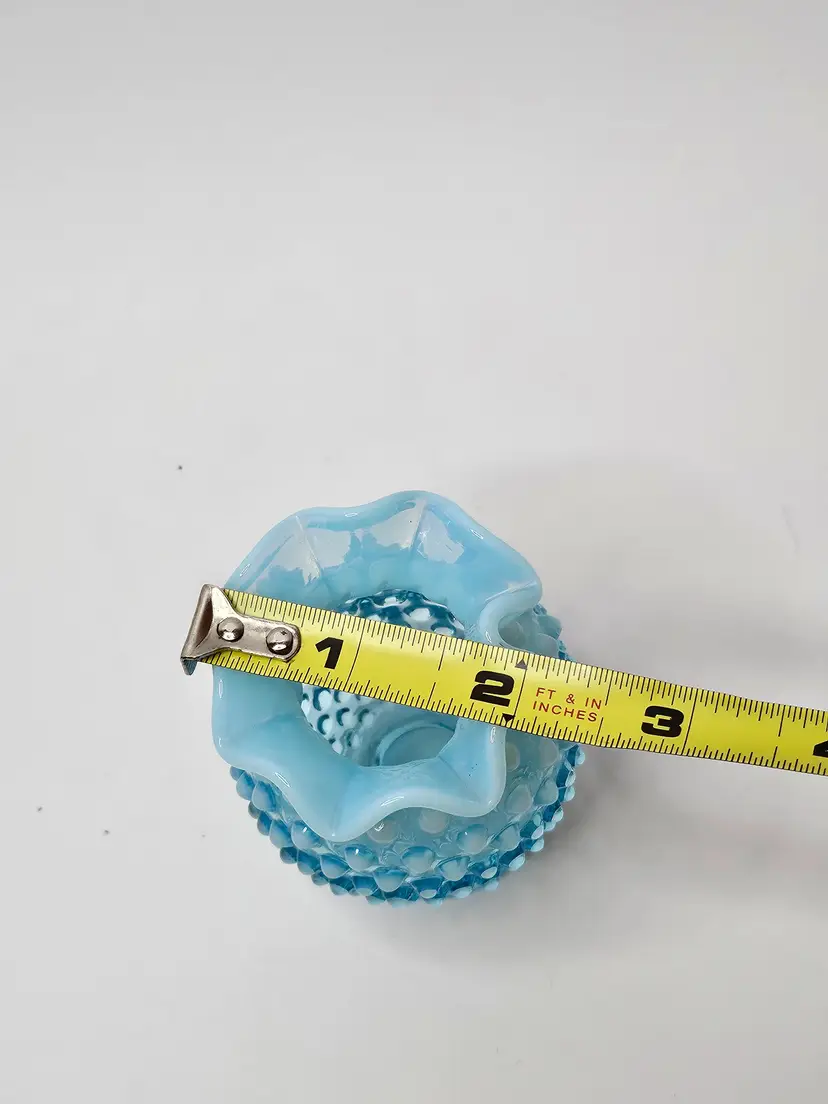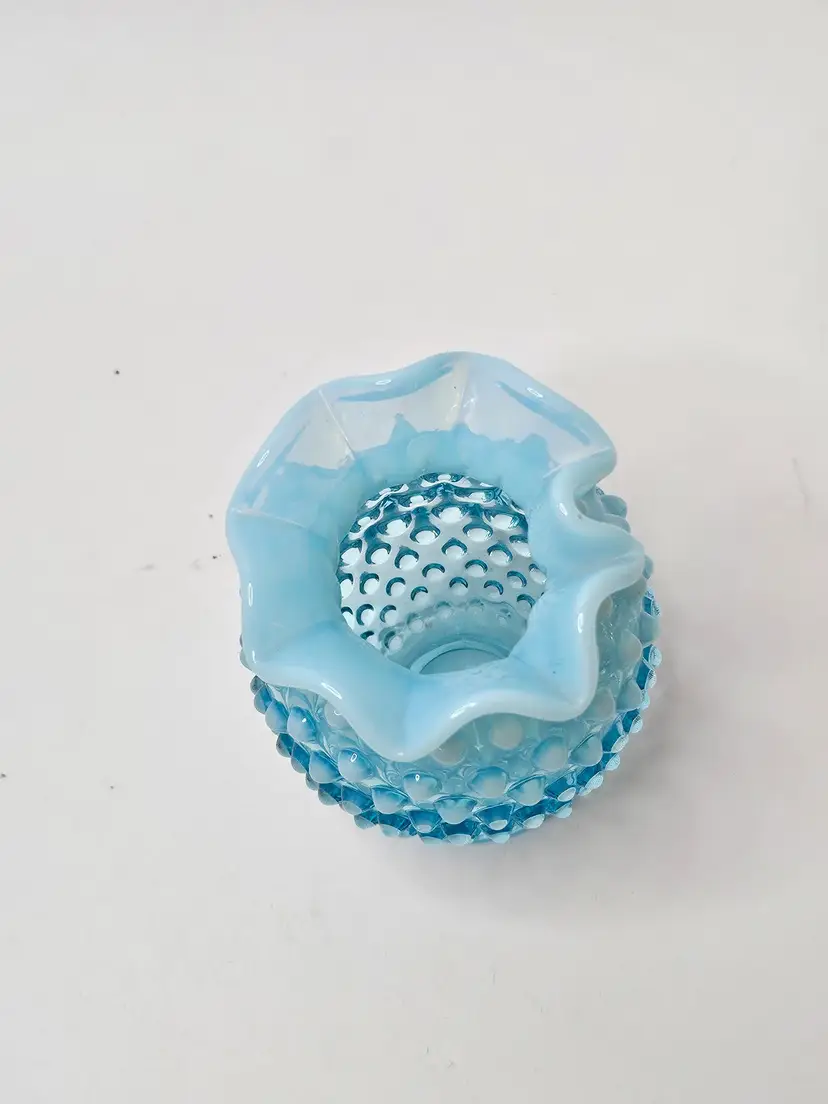 Vintage Blue Opalescent Hobnail Small Vase Ruffled Top Pedestal Bottom 3.75" . Condition is Used. Shipped with USPS Ground Advantage.