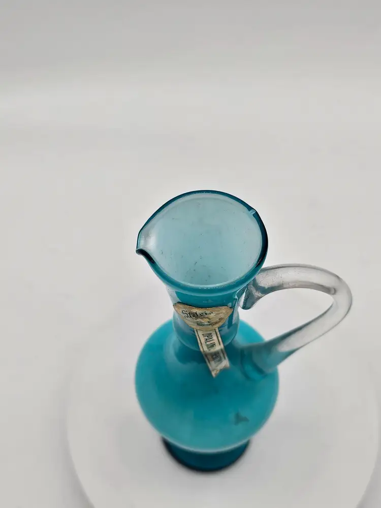 The glass ewer is an original piece, and it is made of high-quality materials and has been produced using traditional techniques. This item is perfect for collectors of vintage glassware, Italian art glass, or anyone who appreciates unique and beautiful pieces.