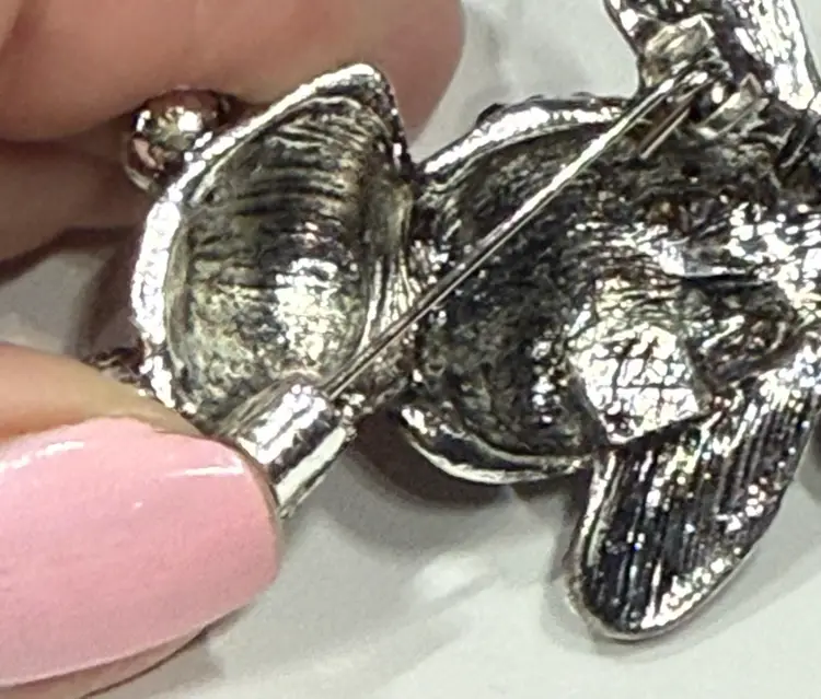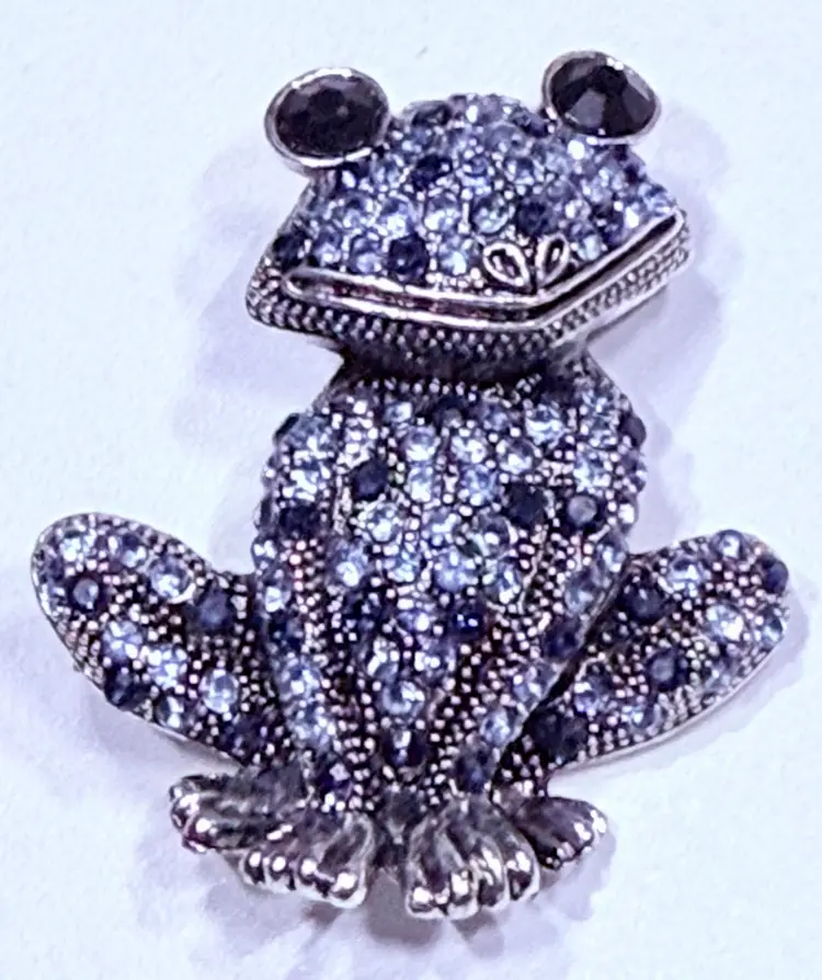 Perfect for wearing on a jacket, scarf, blouse, or handbag, this brooch is also a wonderful collectible piece for frog lovers, animal jewelry enthusiasts, and fans of unique vintage pins. • Style: Frog brooch / Animal pin / Rhinestone jewelry • Material: Silver-tone metal with rhinestones • Stones: Blue and navy crystals with black rhinestone eyes • Condition: Excellent, secure clasp intact