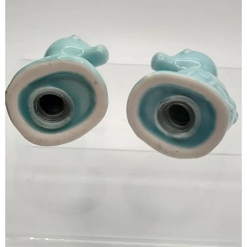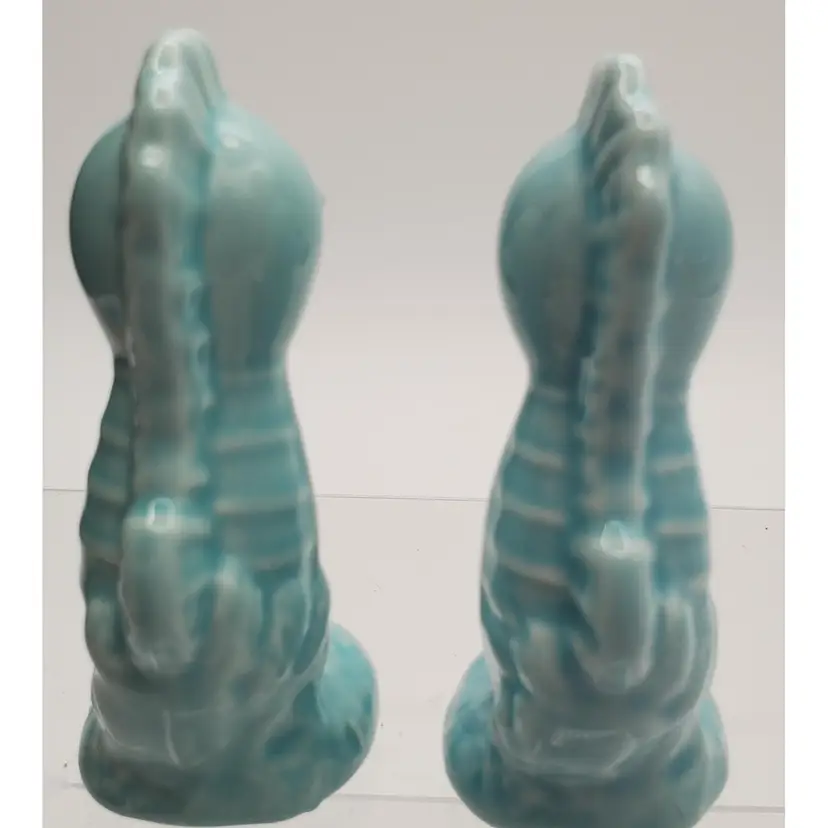 Excellent Condition Add a touch of the ocean to your dining table with these charming vintage blue seahorse salt and pepper shakers. Perfect for collectors or anyone who loves nautical decor.