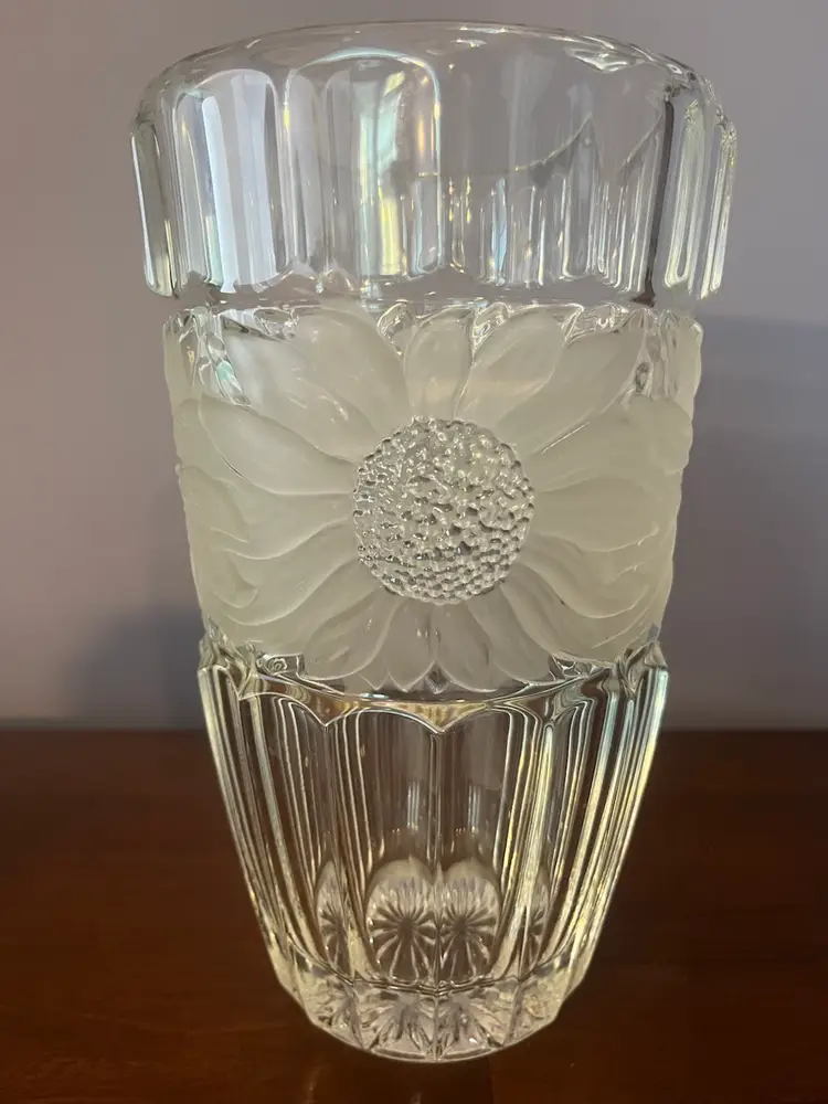 Vintage Bohemian Leaded Crystal Vase in a Lalique style.