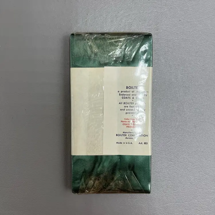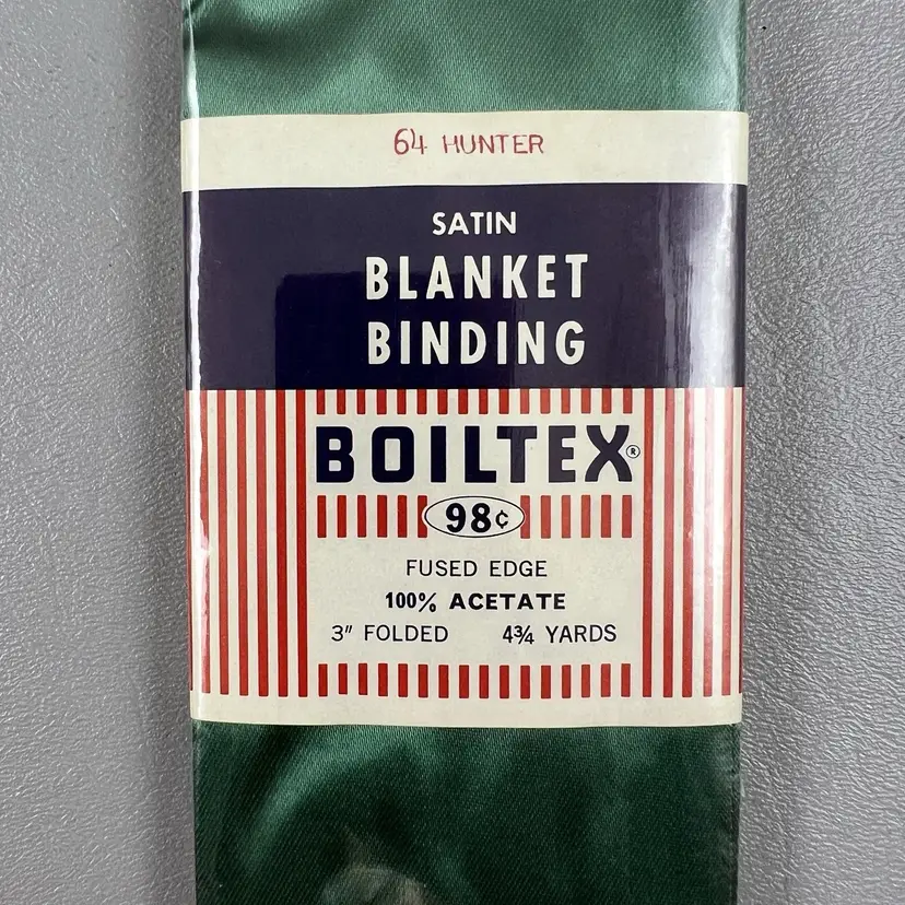 Vintage Boiltex 3" Folded Satin Blanket Binding 4 3/4 Yards Hunter Green NOS New Sealed 100% Acetate Fused Edge Sold by Coats & Clark Manufactured In Aurora, Illinois