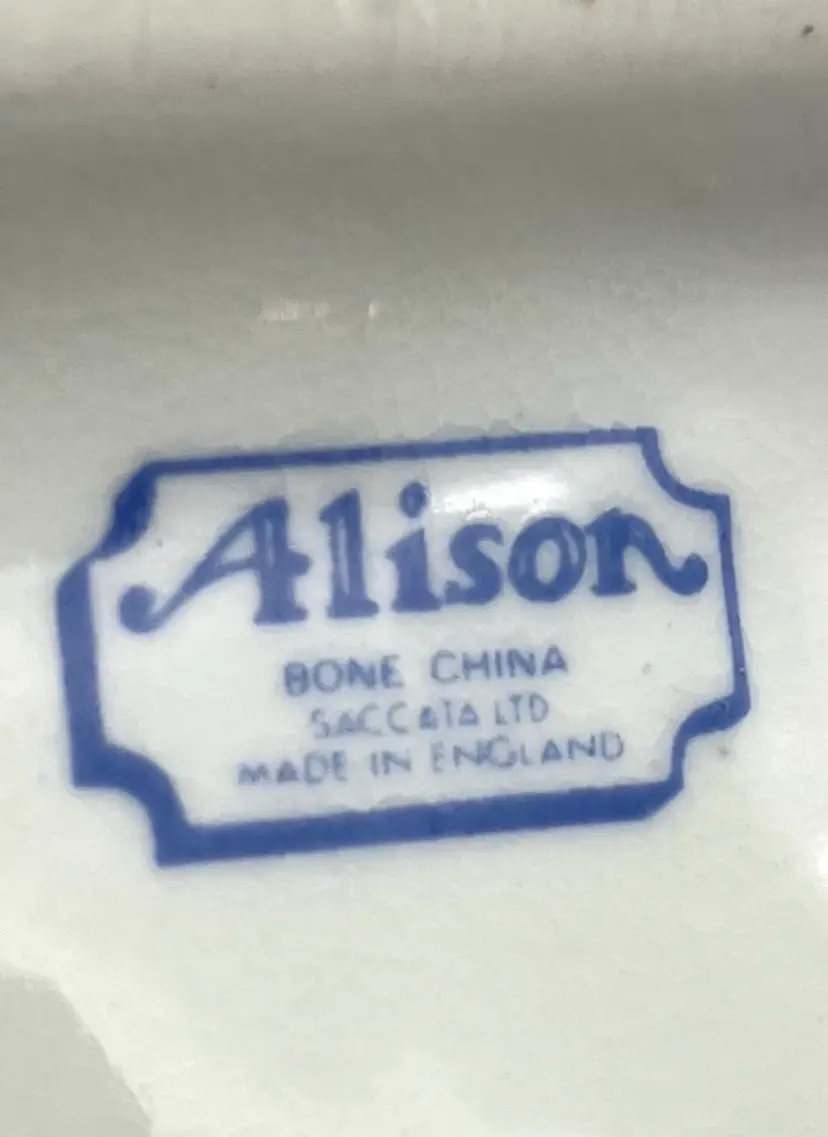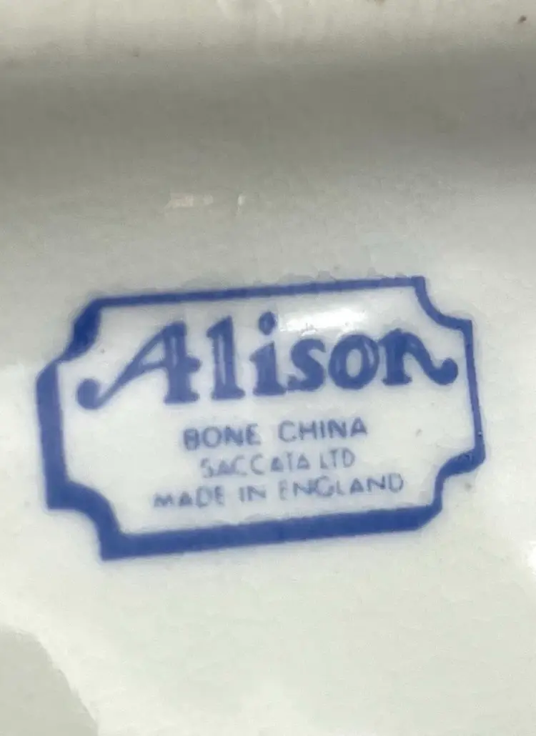 Alison bone China, Saccata LTD, England. Excellent condition. No chips! Measures 4.385” x 2.5” x 3”.