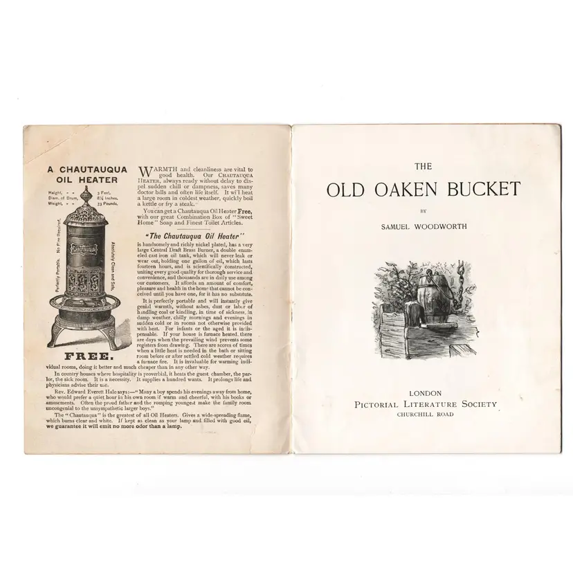 Vintage Booklet The Old Oaken Bucket Samuel Woodworth With Advertisement