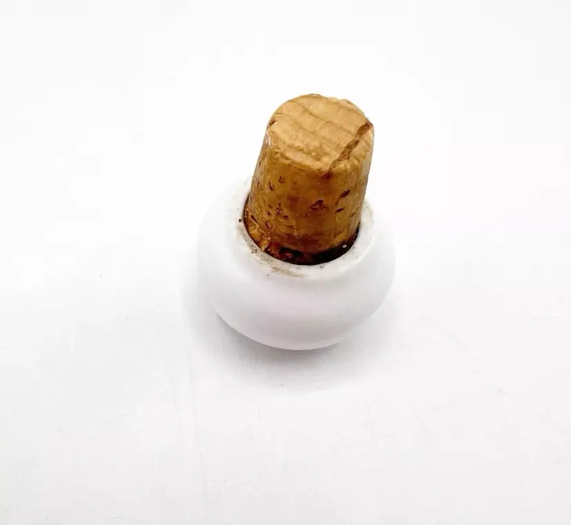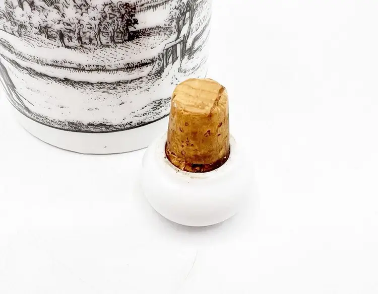 Very good condition, no chips or cracks, stopper sits loosely on top and some wear to cork.