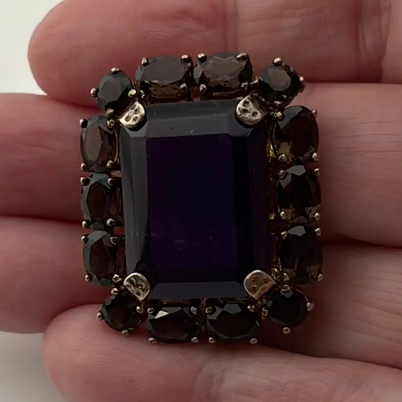 This is a beautiful piece that looks to have been meant for some type of setting. There are some slight scratches on the big stone. The total piece measures 1” across x 1.25” tall.