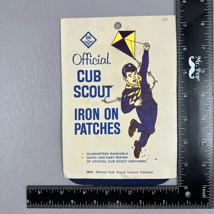 Vintage Boy Scouts Official Cub Scout Iron-On Patches #814 BSA Ephemera Mid Century Vintage Retro Scout Graphics Boy Scout Illustration Flying Kite Nostalgic Americana 1950s 1960s