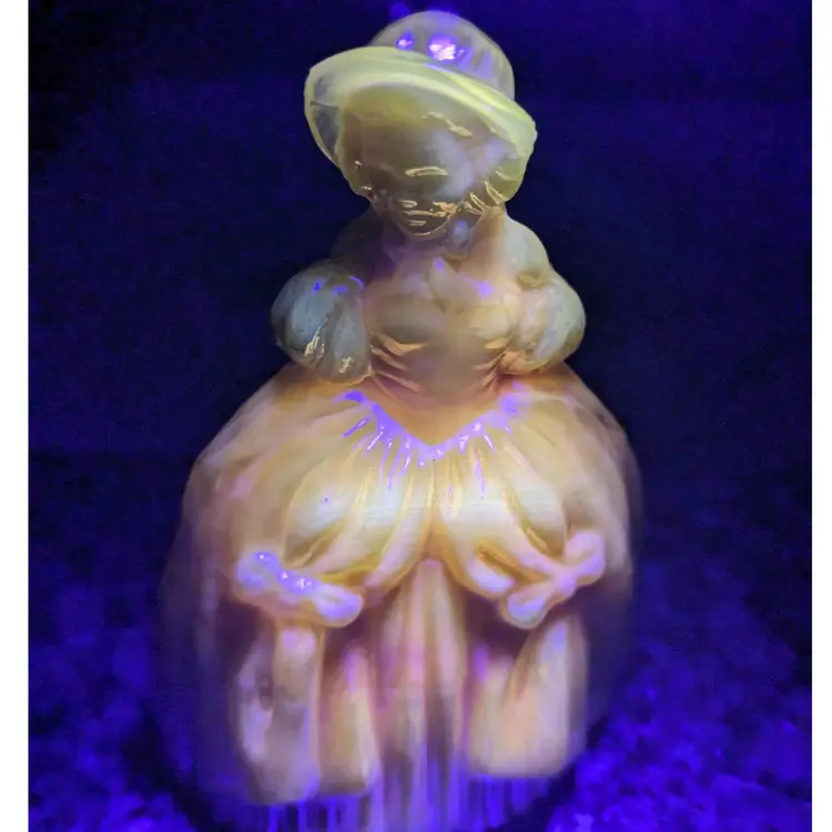 Has a wonderful orange glow under black light. Marked with "B" on the back of her dress. No chips, cracks, breaks or repairs. All pictures provided are a part of the item's description. Shipped with USPS Ground Advantage Mail.