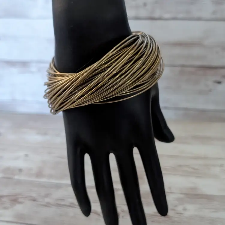 Preowned vintage bracelet, sold as shown - I am unsure of material type(s) because of this. Pictures show different angles for you to review - while I attempt to note any defects, some tarnish/signs of wear may be visible that are not otherwise stated.