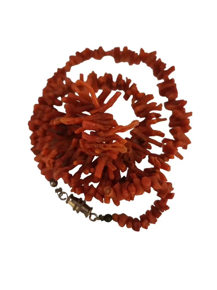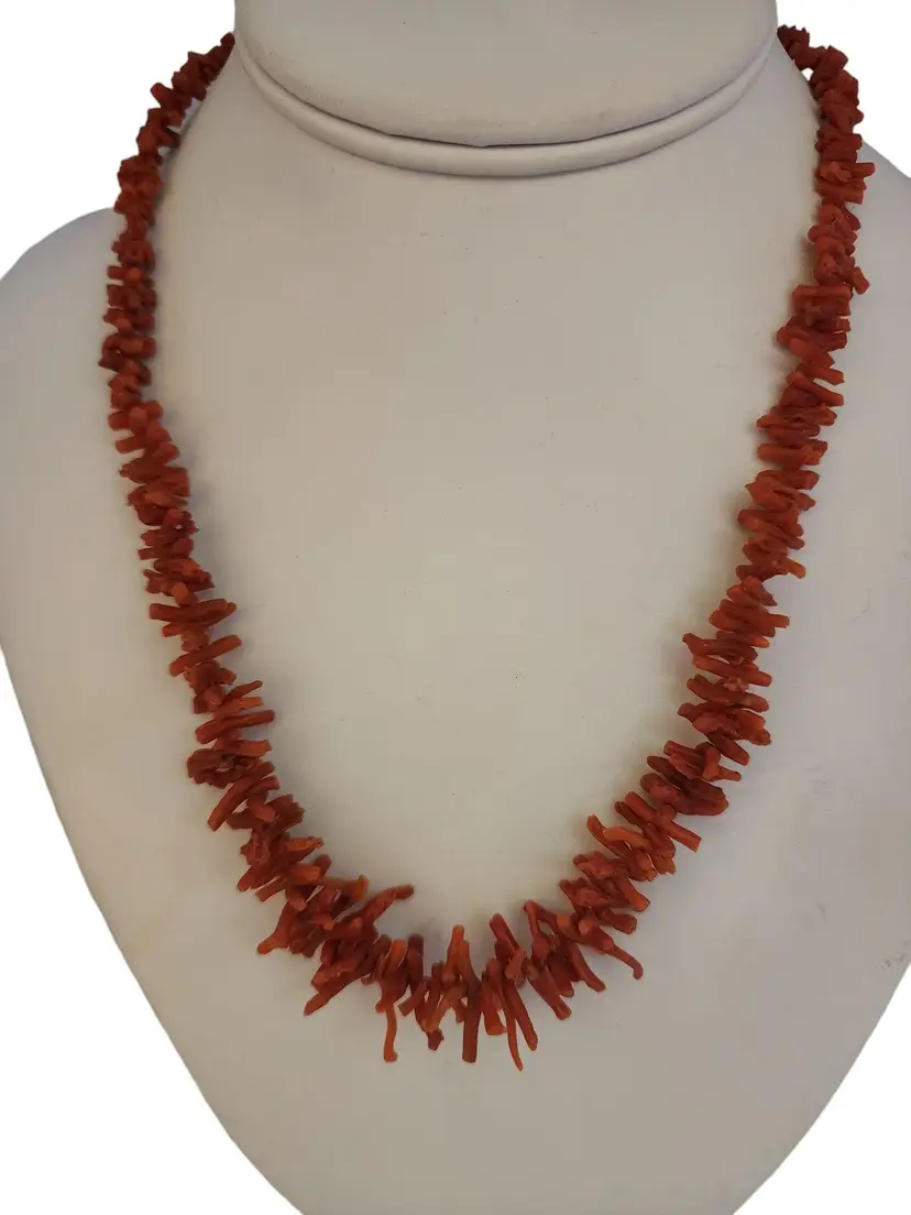 Size: 20" long Color: Orange Condition: Very good vintage Signed: None Details: Secure barrel clasp