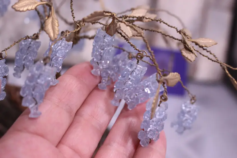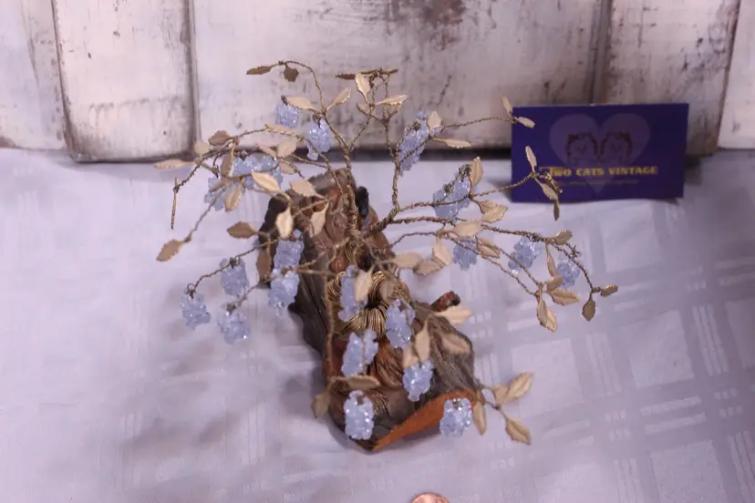 This is a really nice brass and bead wire wrapped grape tree on a wood base. It is so unique that I have not seen one like it before.